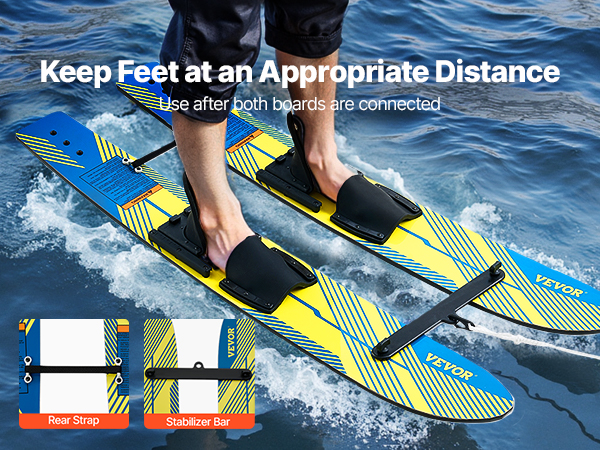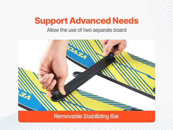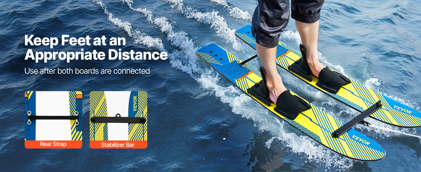 VEVOR Water Skis 116.8 cm / 46 inch, Water Ski Trainers with X-7 Adjustable Bindings, Double-Handle Rope & Removable Stabilizing Bar, Training Waterskis Combo for Youth Up to 136 kg
