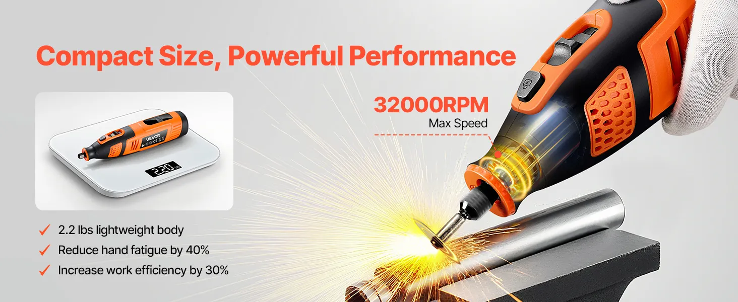 Boasting a maximum speed of 32000 RPM, this power rotary tool completes tasks quickly and effectively. Its lightweight design, combined with an ergonomic grip, ensures comfort during prolonged use, enhancing precision and efficiency.