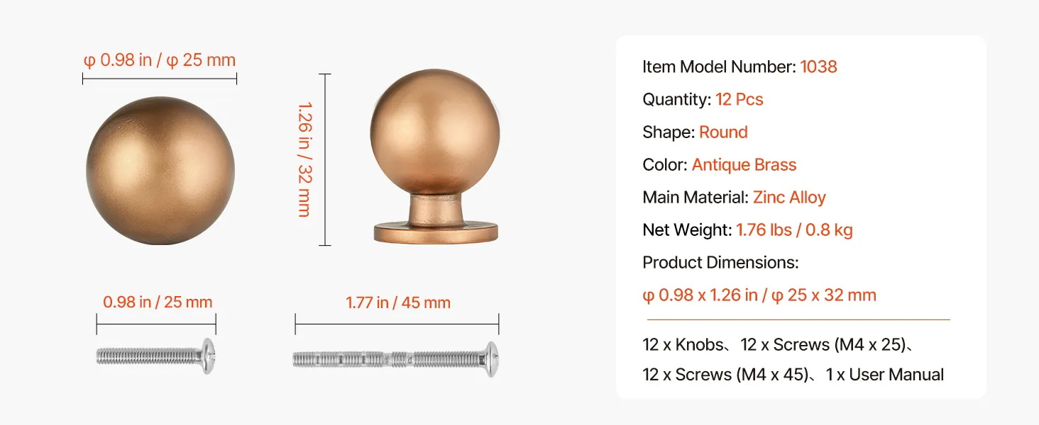 Our dresser knobs include two screw sizes to match different cabinet thicknesses. Screws can be trimmed as needed, and installation takes just a few easy steps with no special tools required.