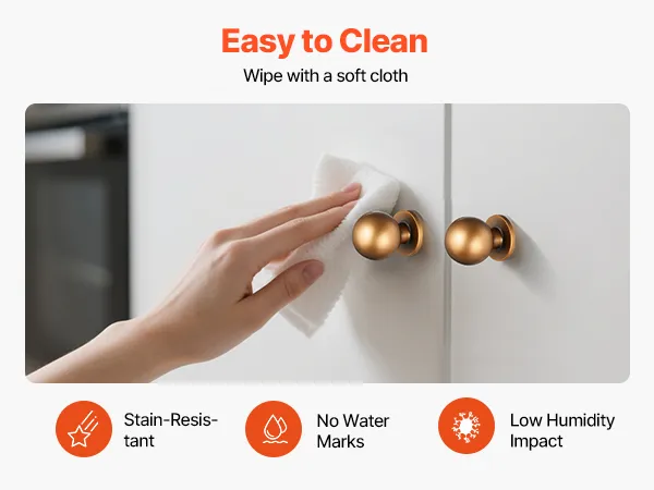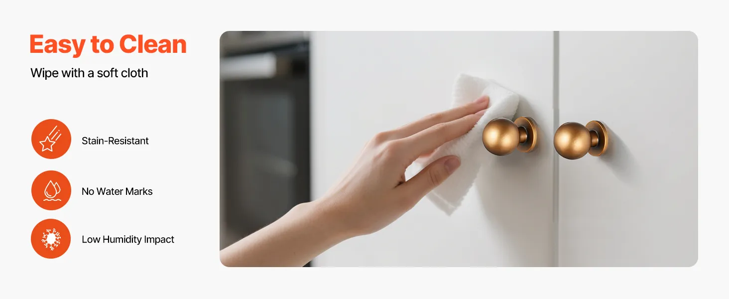 The drawer knob resists stains, water marks, and damp buildup. For daily care, simply wipe clean with a soft cloth. Maintenance is quick and hassle-free.