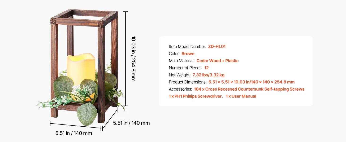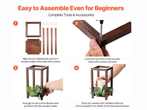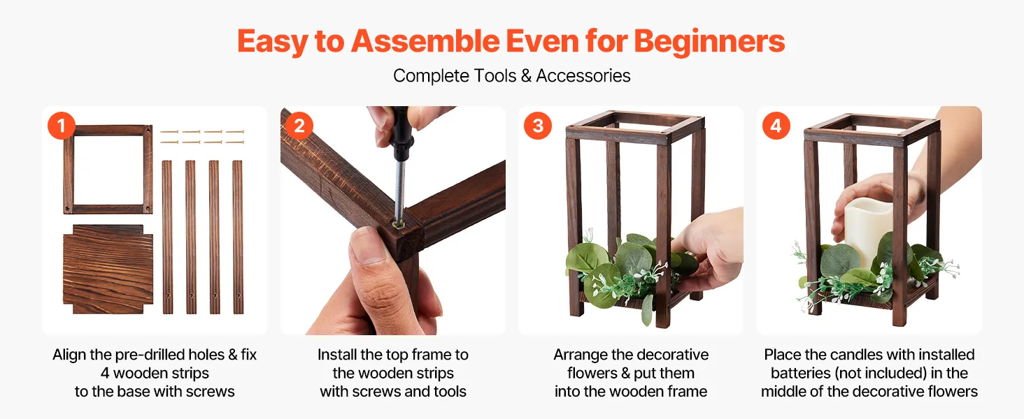 These wood lanterns come with matching screws, tools, and a detailed illustrated user manual. The installation process is clear and simple without additional tools needed. Even beginners can finish assembling and arranging the lantern with ease.
