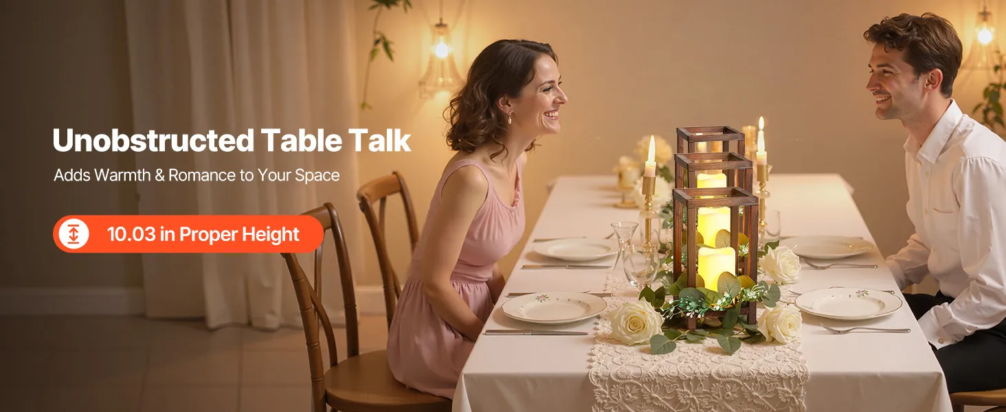 With a height of only 5.51 in, these wooden lanterns are suitable for placing in the middle of the dining table without blocking views. They easily create a warm and interactive atmosphere and enhance every gathering with a cozy, romantic vibe.