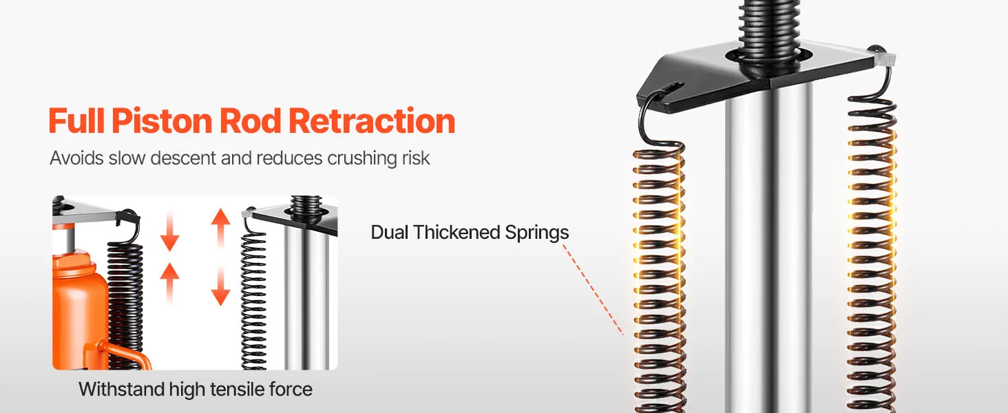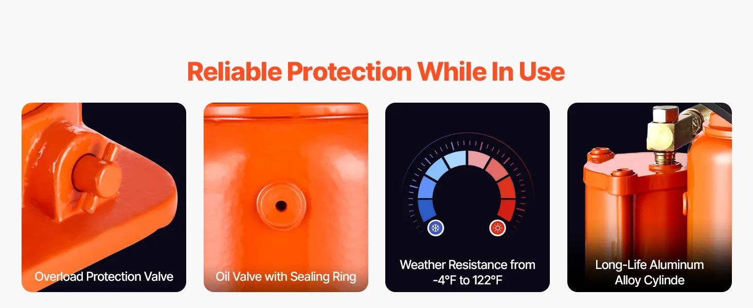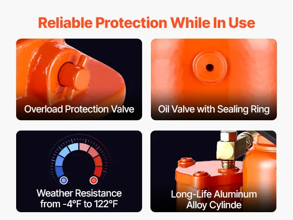 This bottle jack is designed with a durable and sturdy handle, resisting deformation and ensuring long-lasting performance.