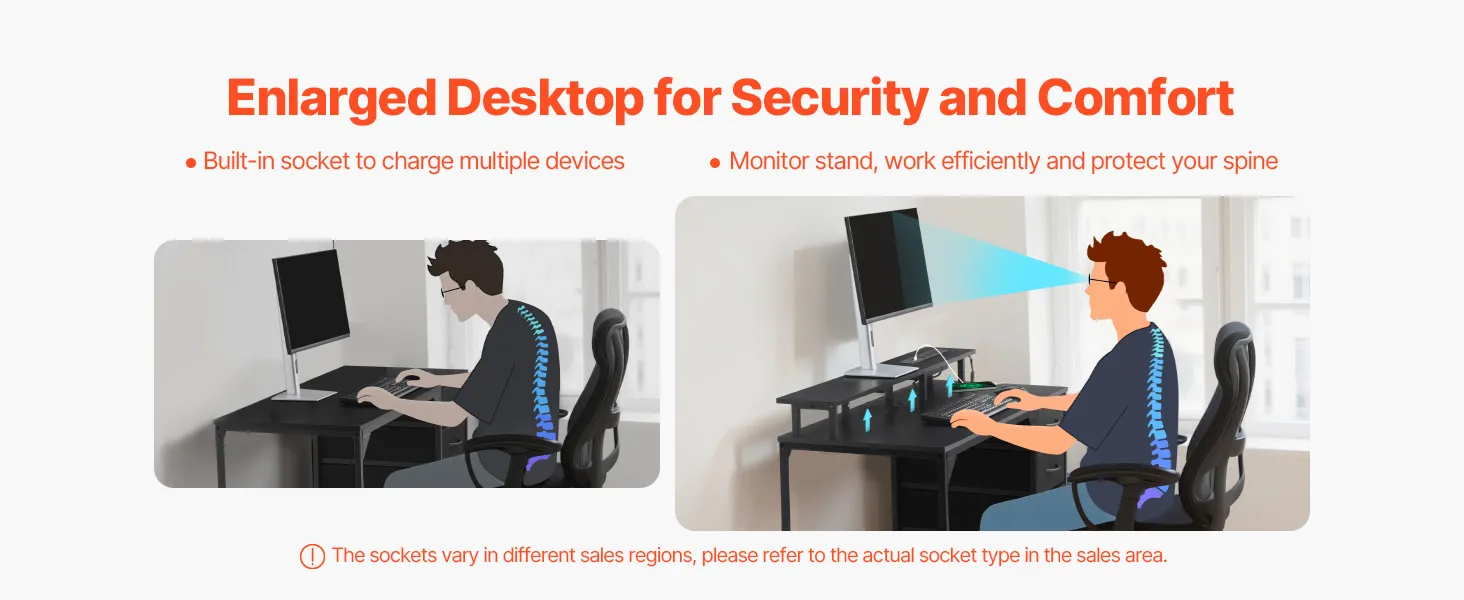 • Reinforced Frame Structure: Made with a high quality carbon steel frame with a rust-resistant finish, the reinforced base provides steady support with less wobble, and 4 adjustable feet help level the office desk on uneven floors