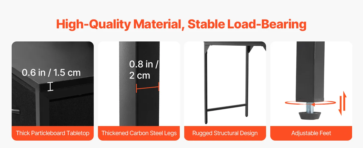 • Strong Load Capacity and Stability: The 0.6 in / 1.5 cm particleboard desktop supports up to 150 lbs / 68 kg, the smooth surface resists water stains and scratches and wipes clean, giving you a solid work area for your PC, books, and supplies