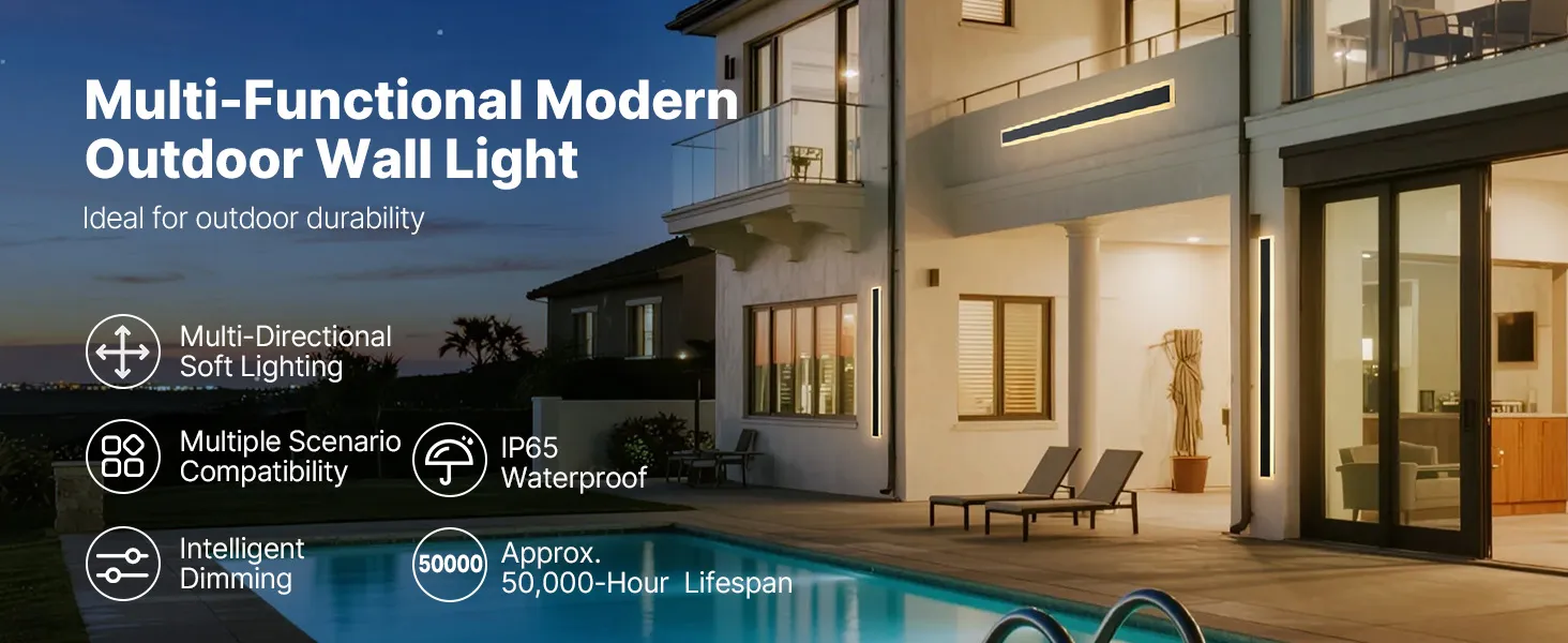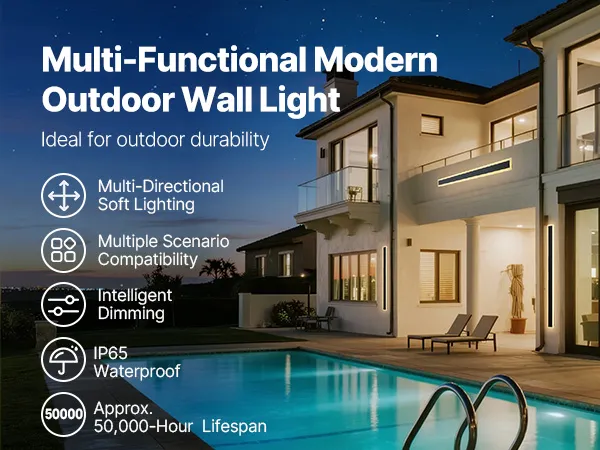 Multi-directional soft light creates ambient moods, IP65 waterproof ensures durability for outdoor use, and is equipped with a remote control for smart dimming. This energy-efficient outdoor wall light with extended lifespan is ideal for gardens, entryways, and commercial facades.