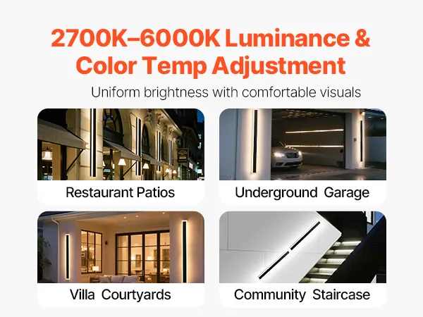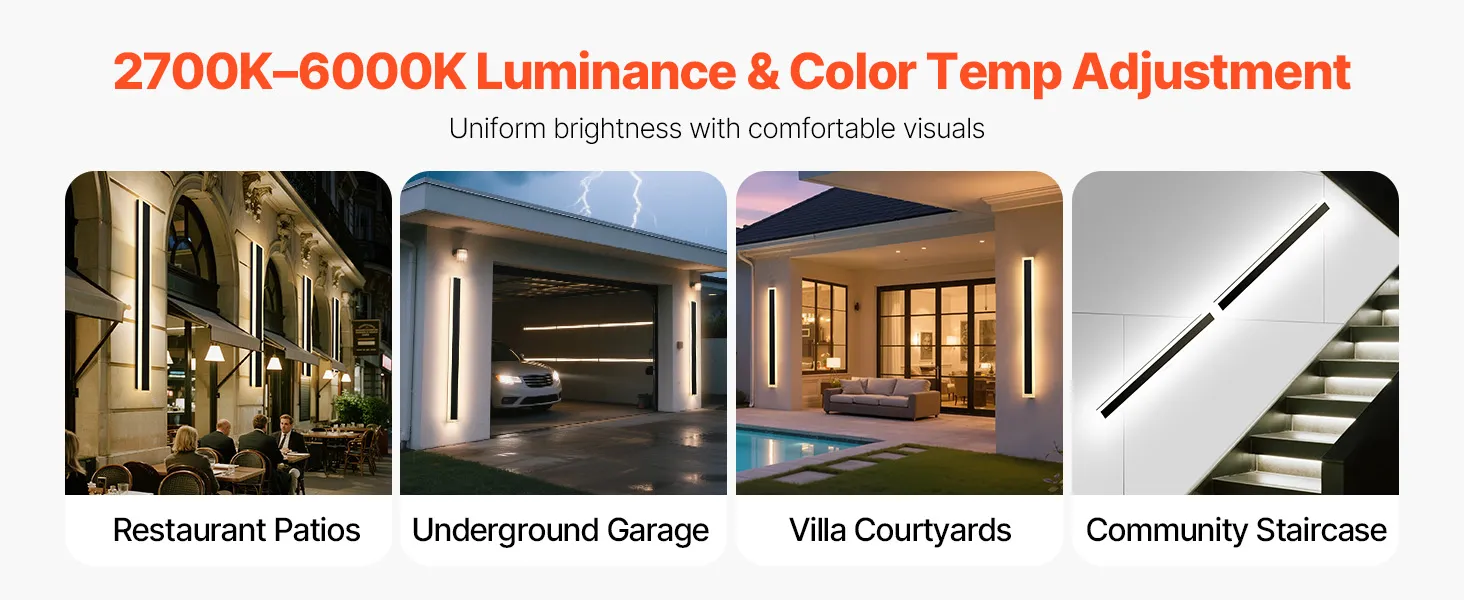 Our exterior wall light has 2700K-6000K adjustable color temperature and warm to cold light, with wide-area adjustment. Illuminating a wide range of spaces in garages, staircases, and more. Creating a personalized ambiance while meeting residential or commercial lighting needs.
