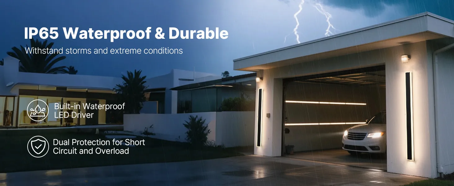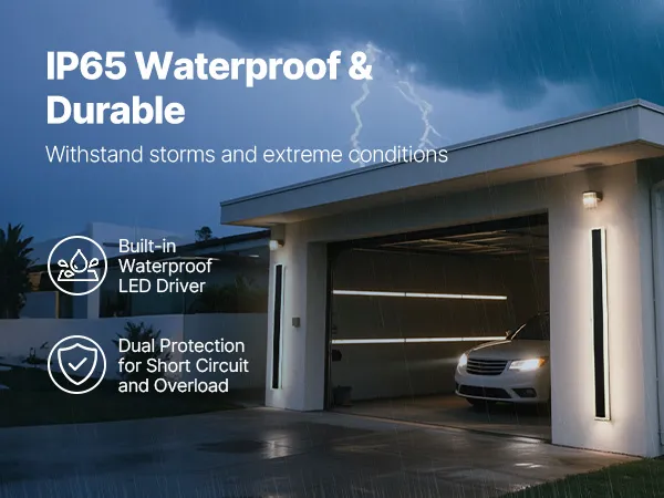 With IP65 waterproof, our outdoor wall light fixture has excellent waterproof and airtight performance, withstanding extreme weather conditions like storms and strong winds. Built-in waterproof LED driver features short-circuit and overload protection, ensuring reliable operation.