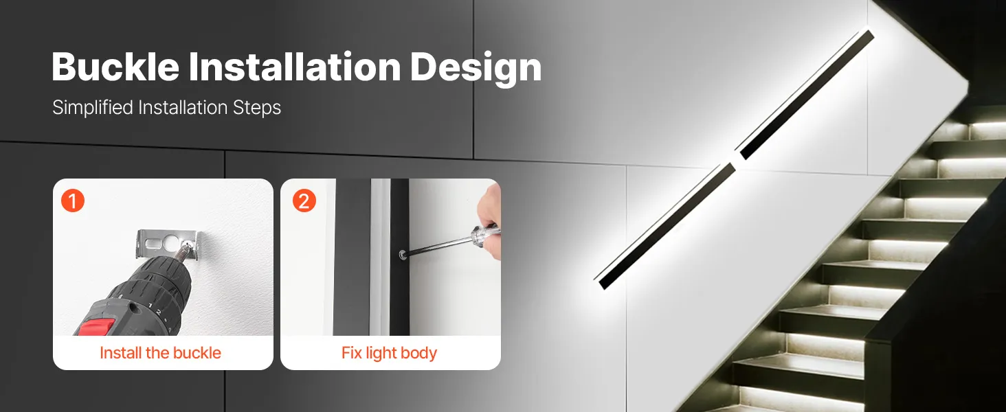 This outdoor wall sconce features pre-grooved wiring channels and buckle installation. First, organize wiring within channels, then fix the light body through the buckle. The two-step process simplifies complex operations and is suitable for various outdoor installations.