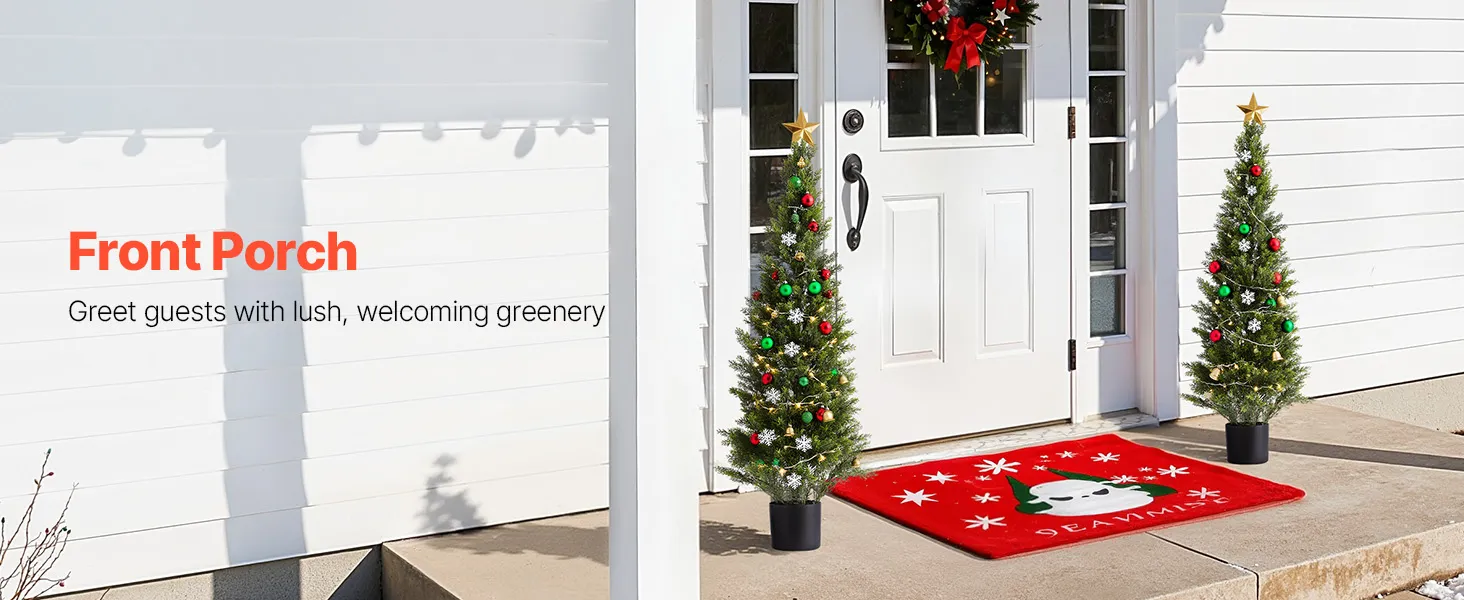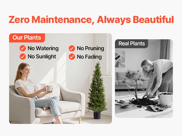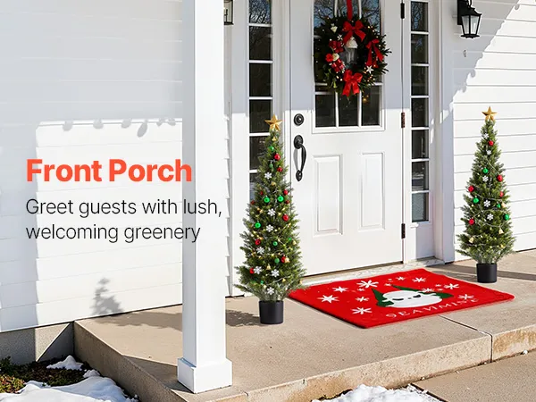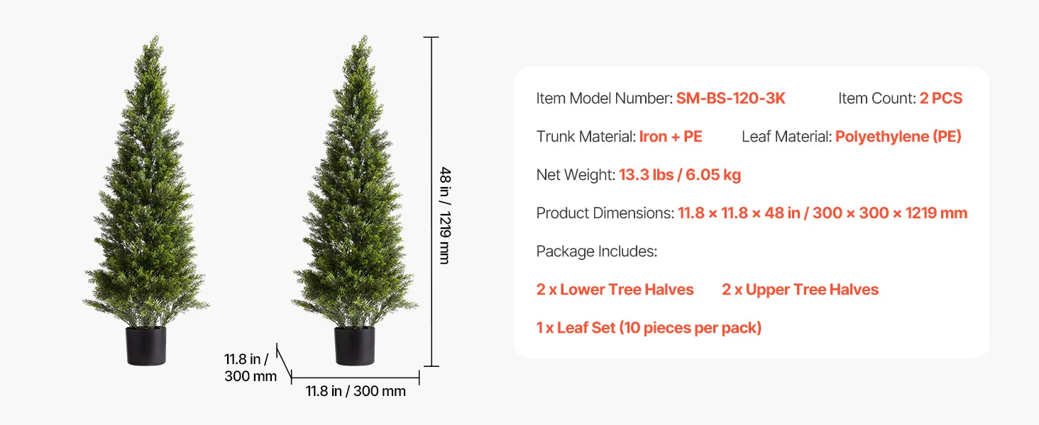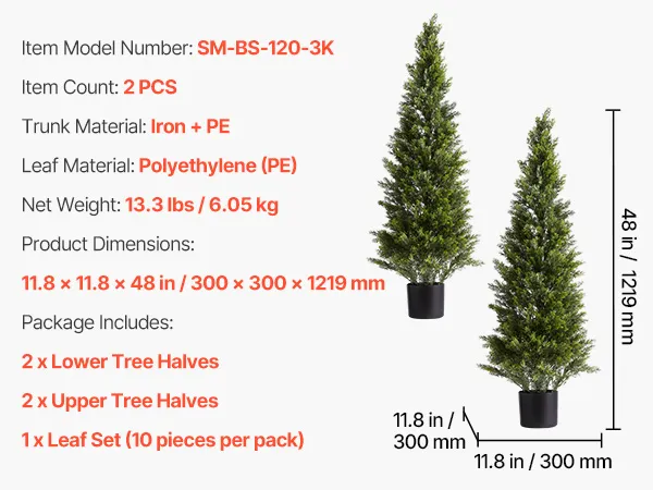 VEVOR Artificial Topiary Cedar Trees, 2 Set 1219mm Faux Pine Shrubs Plants, Fake Silk Tree Look Real, Easy Assembly for Decor Front Porch Outdoor Patio Garden Balcony Backyard Indoor Office