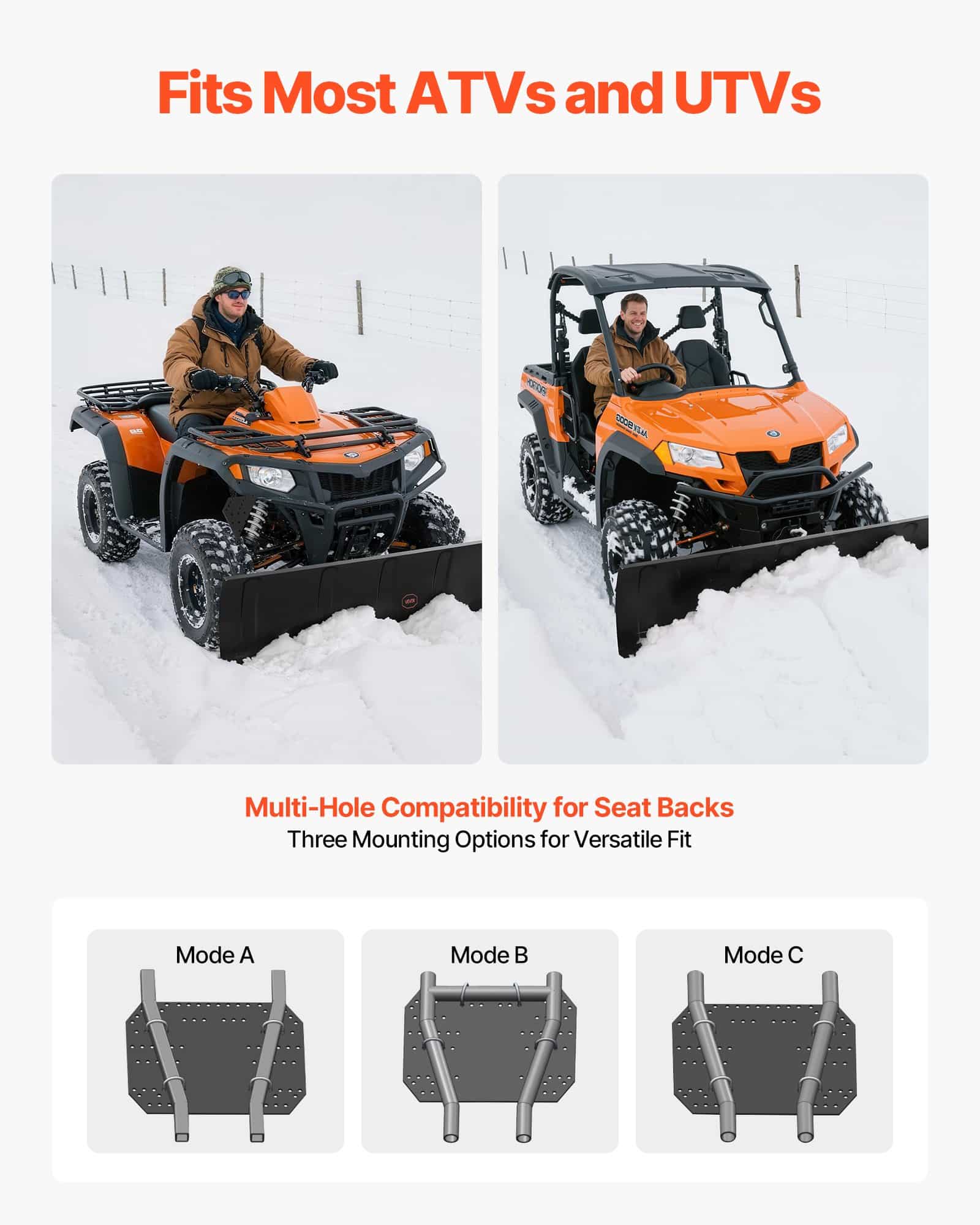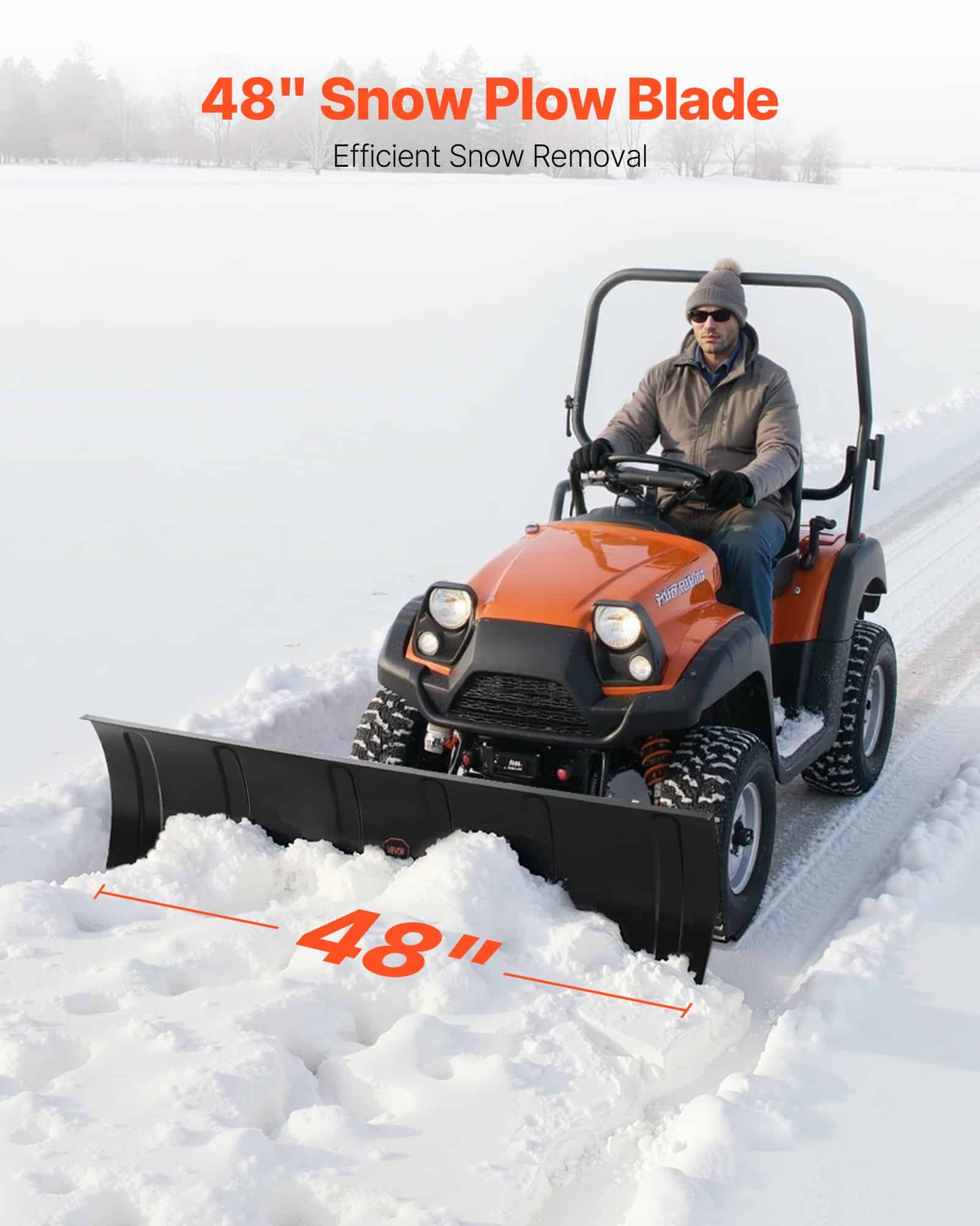 VEVOR Snow Plow Kit, 122 cm Universal Snow Plow Attachment, Height & Left-Right Adjustable, Quick To Detach, Steel ATV Scrape Blade, 3 Mount Options, Efficient Snows Clearing, for Most ATVs & UTVs