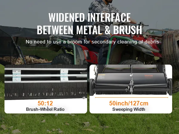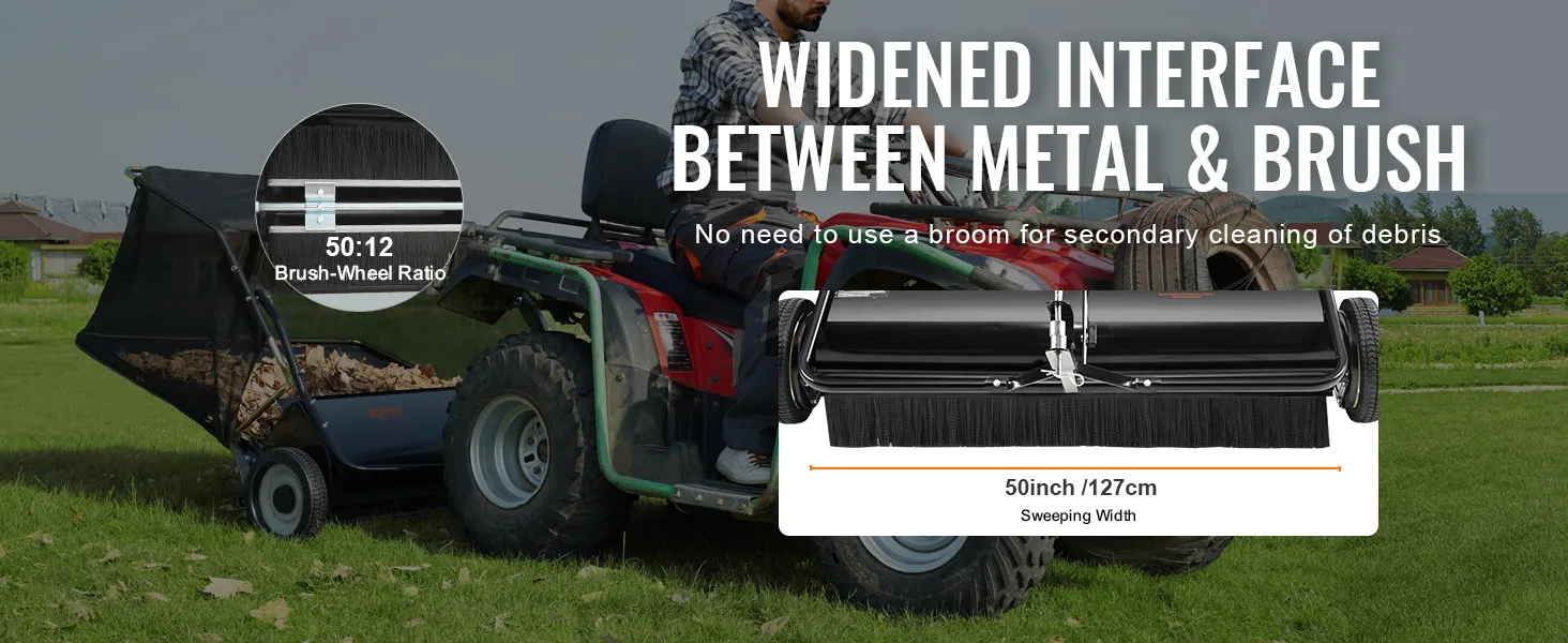 The universal hitch is compatible with a range of vehicles. The large wheels are durable and puncture-resistant, providing smooth moving on different surfaces. The sturdy PP brushes deliver a thorough sweep. Finish the job quickly and effortlessly!
