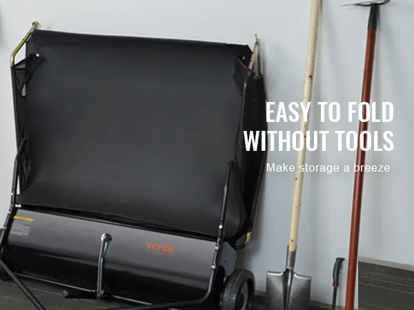 Складная подметальная машина для травы упрощает хранение. Завершив уход за газоном, вы можете легко убрать подметальную машину в сарай или повесить на стену гаража, занимая при этом минимум места.