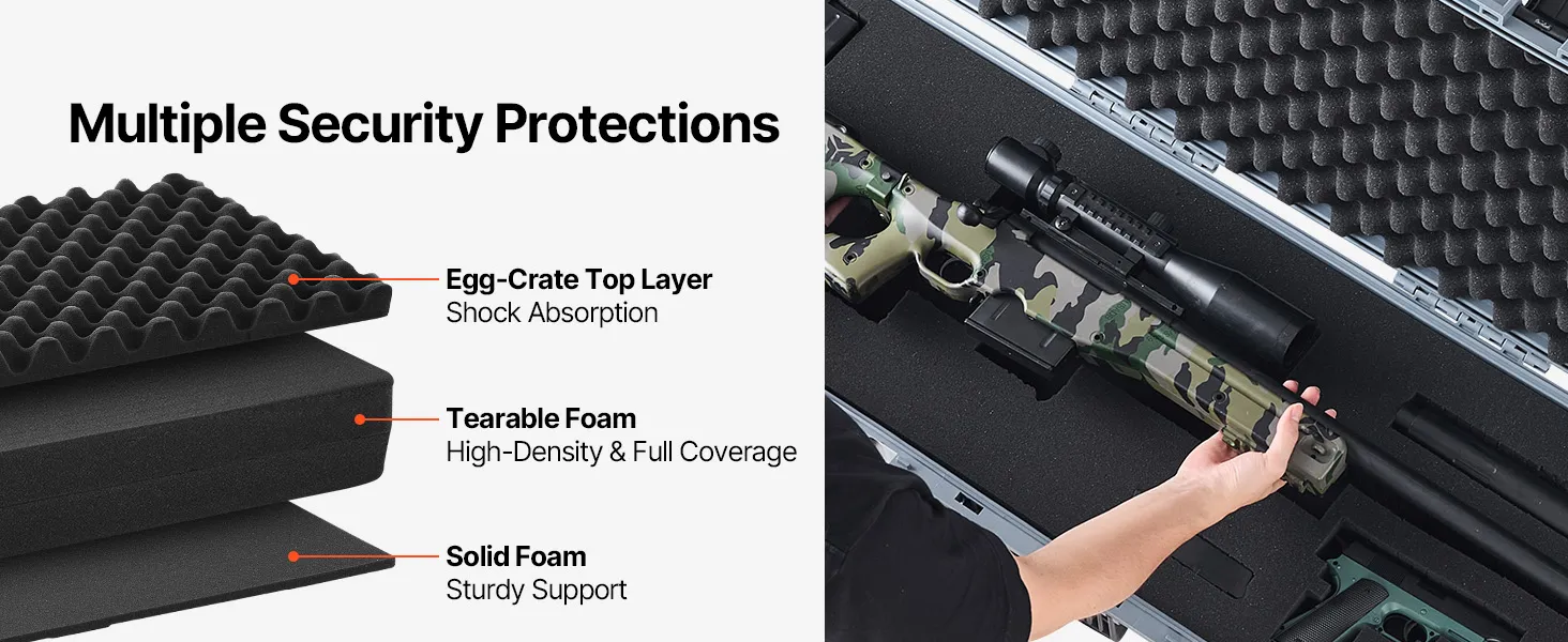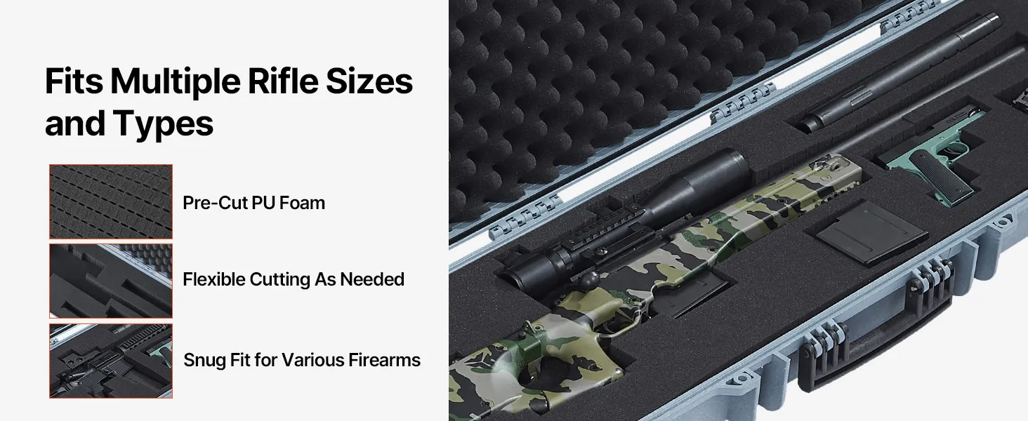 With its rugged construction, this hard rifle case ensures your firearms are always well-protected, keeping them secure in any situation.
