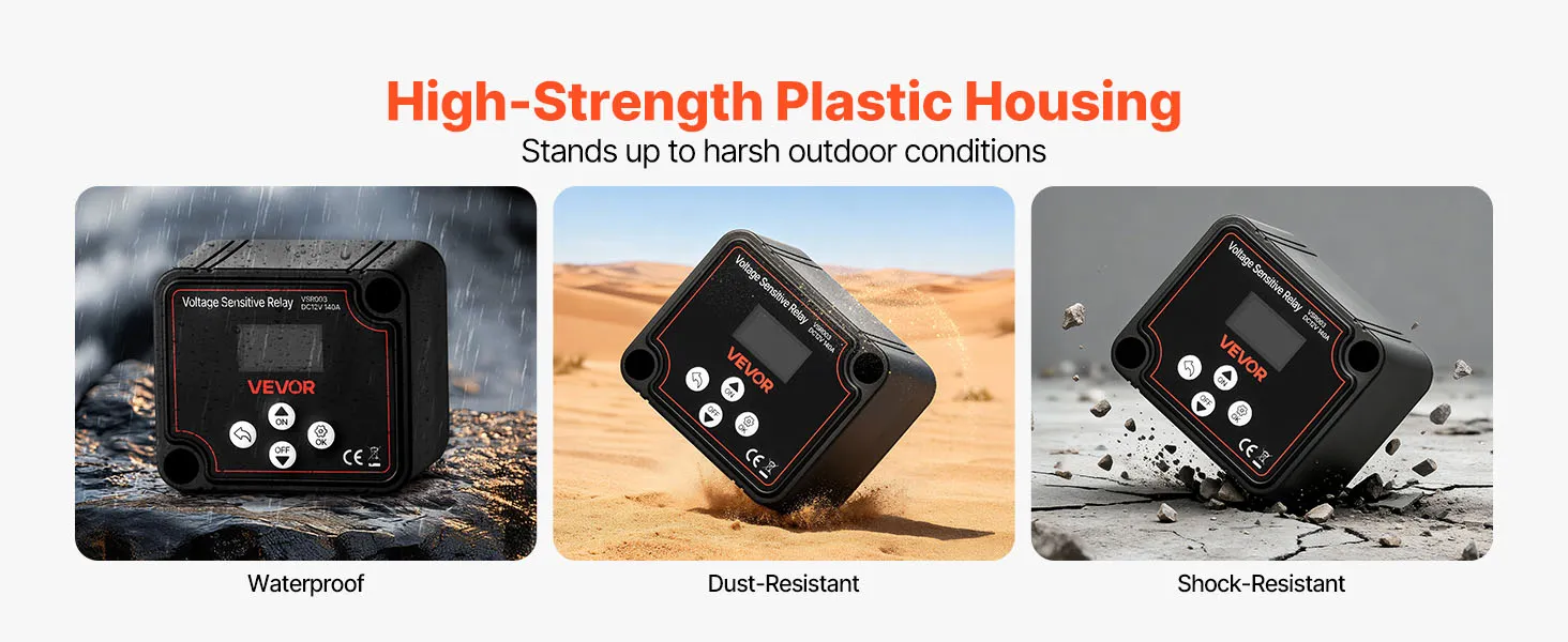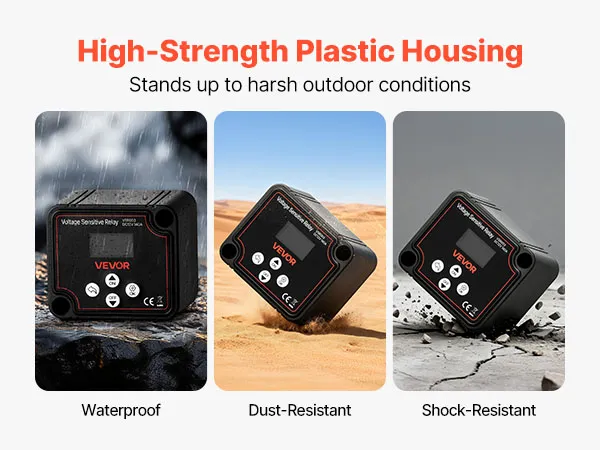 Featuring high-strength plastic housing, this smart battery isolator provides strong impact resistance to effectively withstand collisions. Treated with special technology, it can avoid the intrusion of water and dust.