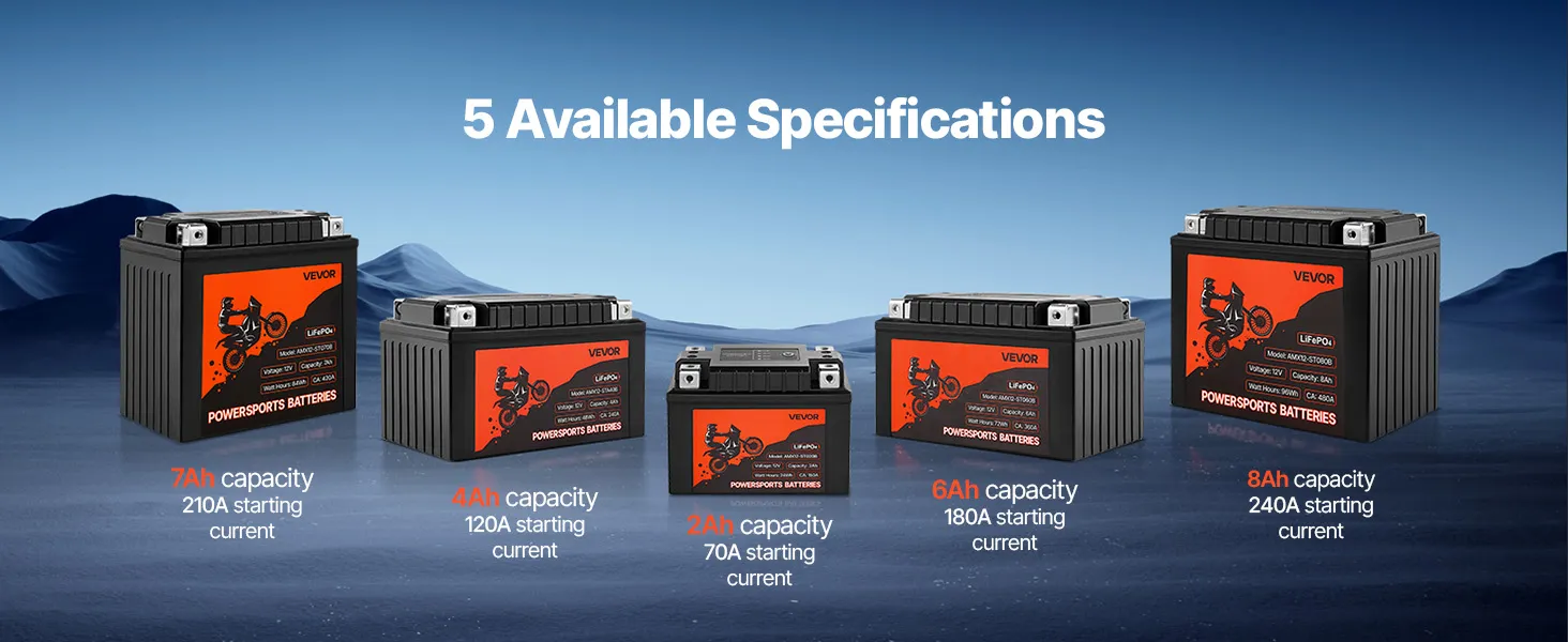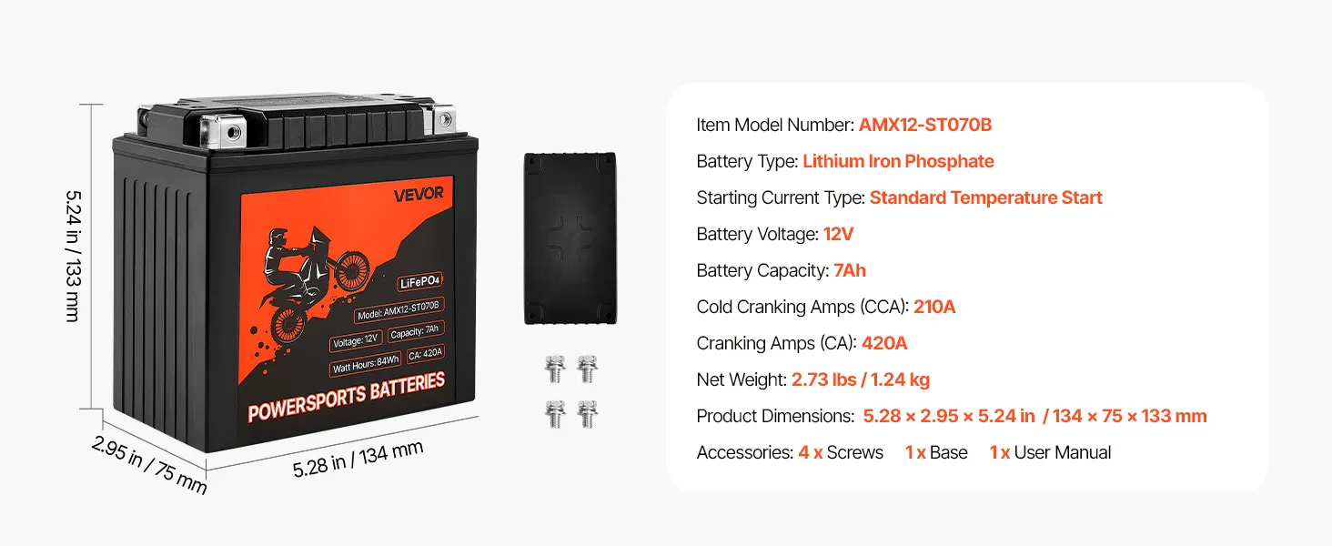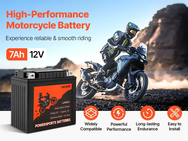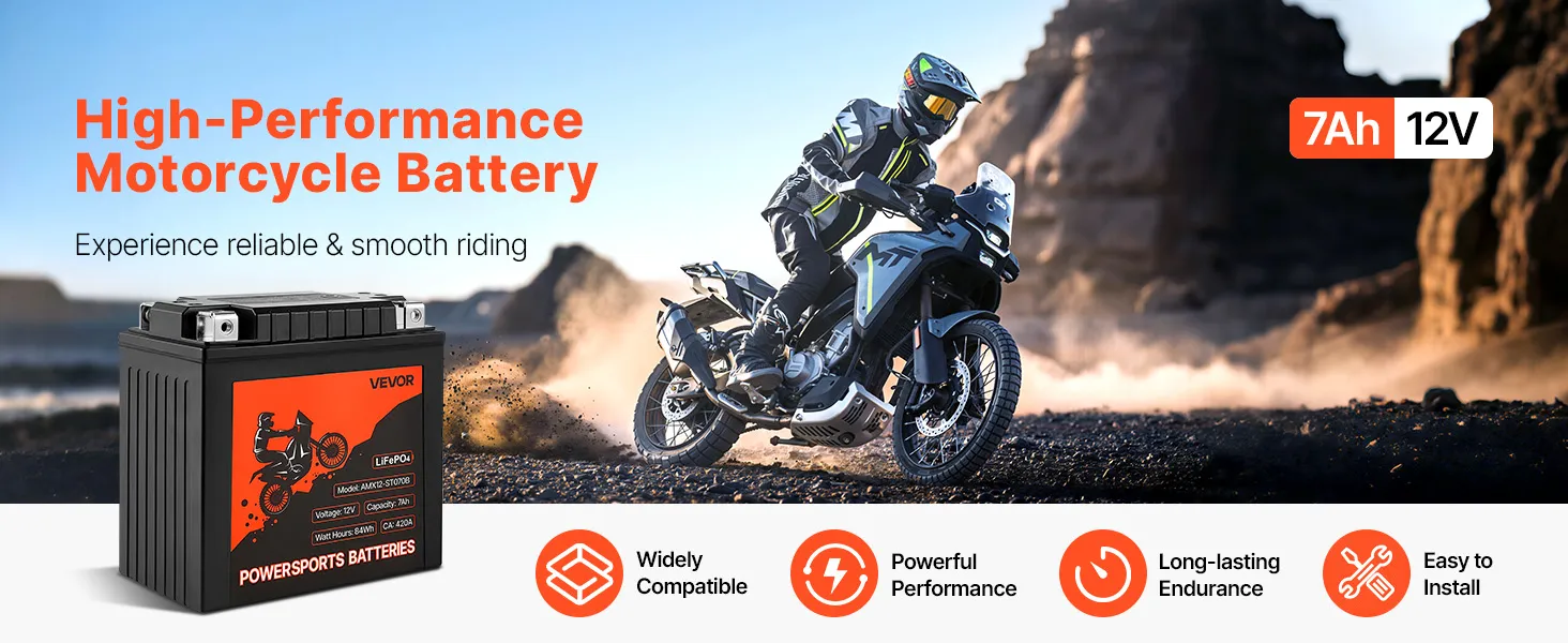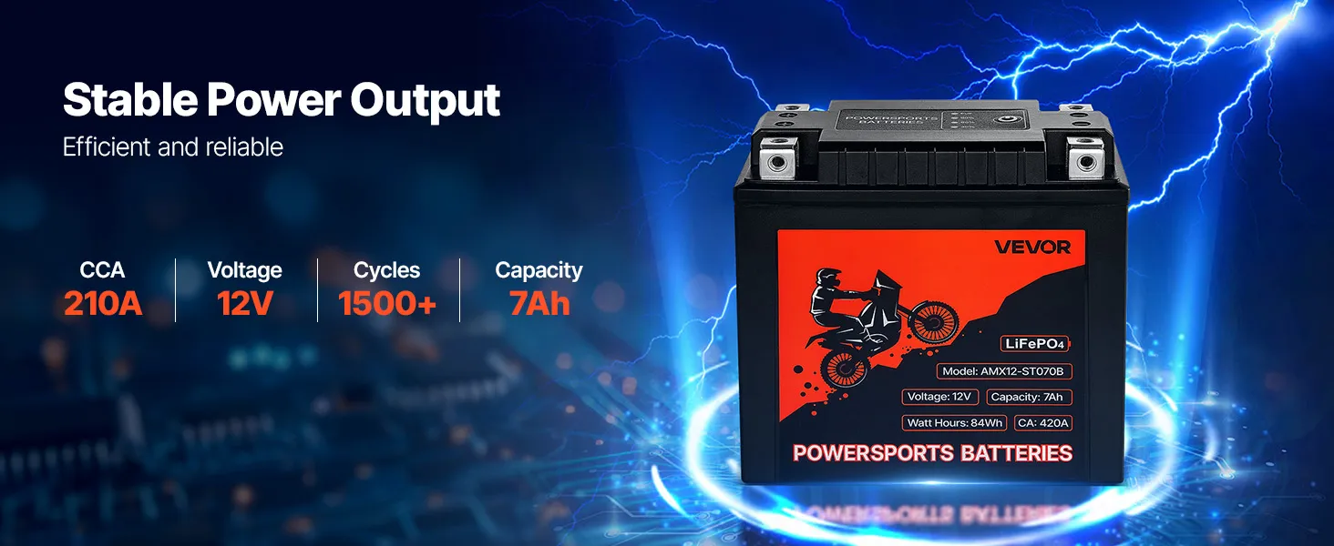 VEVOR Motorcycle Battery, 12 Volt 7Ah, LiFePO4 Lithium Pre-Charged Powersports Battery, Maintenance Free & High Performance, Compatible with ATV, Motorcycle, Jet Skis, Scooter, UTV, and More