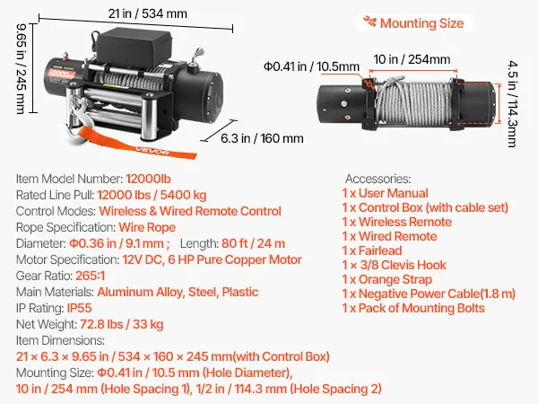 This electric winch delivers strong pulling power, helping you pull vehicles out of mud or sand with ease. Enjoy off-road trips with smooth recovery every time.