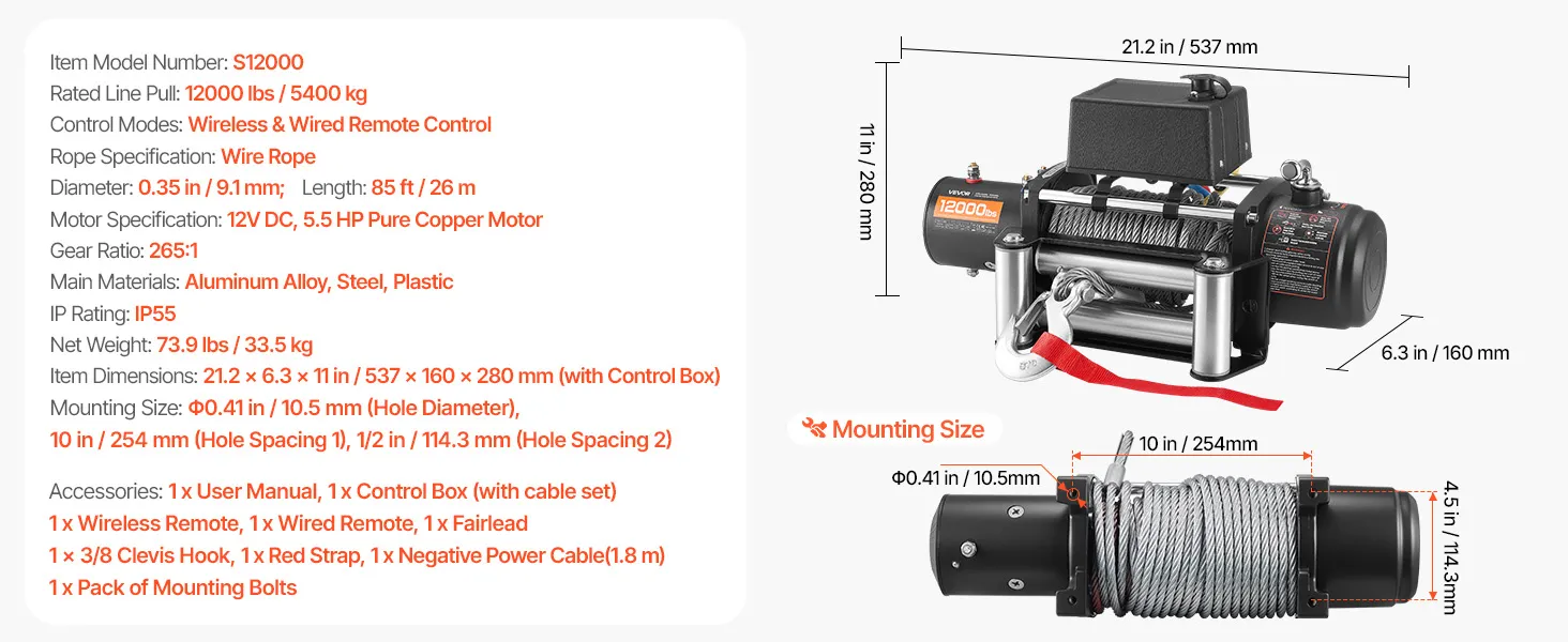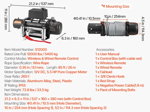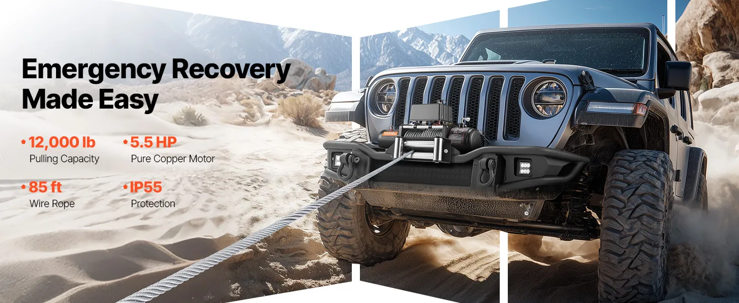 • 12000 lbs Strong Pull: This electric winch delivers 12,000 lbs pulling force, making SUV or pickup recovery from mud or sand quick and stress-free without gear distortion worries