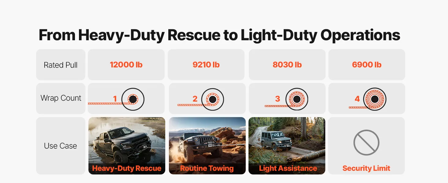 • Wide Compatibility: The universal mounting pattern fits most SUVs, pickups, and Jeeps. The recovery winch set includes fairlead, hook, and power cables—ready for fast setup and use.
