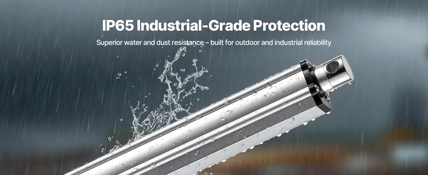IP65 protection rating provides excellent dust and water resistance, ensuring reliable operation in indoor and outdoor conditions. (Note: For longer longevity, prolonged outdoor exposure is not recommended; Water should not penetrate the interior of the motor)