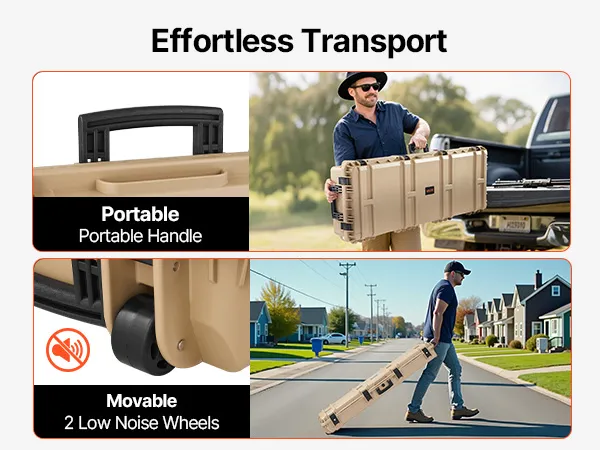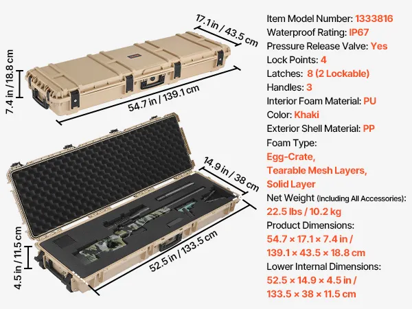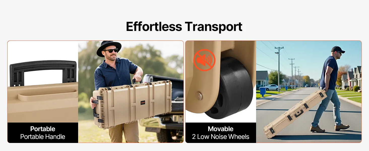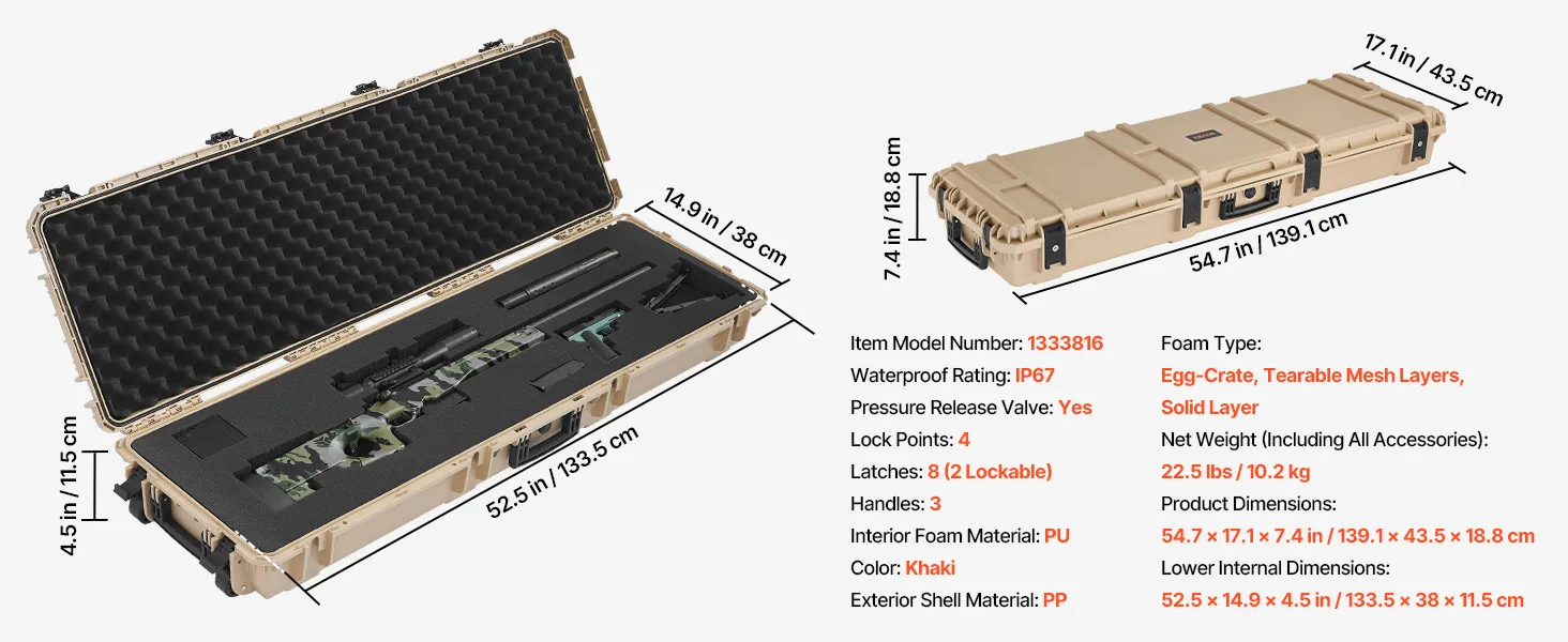 VEVOR Hard Rifle Case, Lockable Rifle Case with Pre-cut Foams, 1320 mm Gun Storage with Wheels, Heavy Duty IP67 Waterproof & Dustproof Pistol Storage Cases for Rifles, Shotguns, Airsoft Guns, Khaki