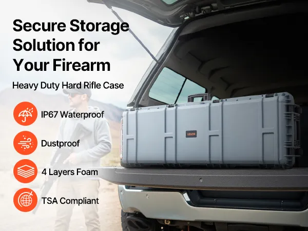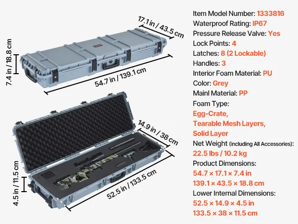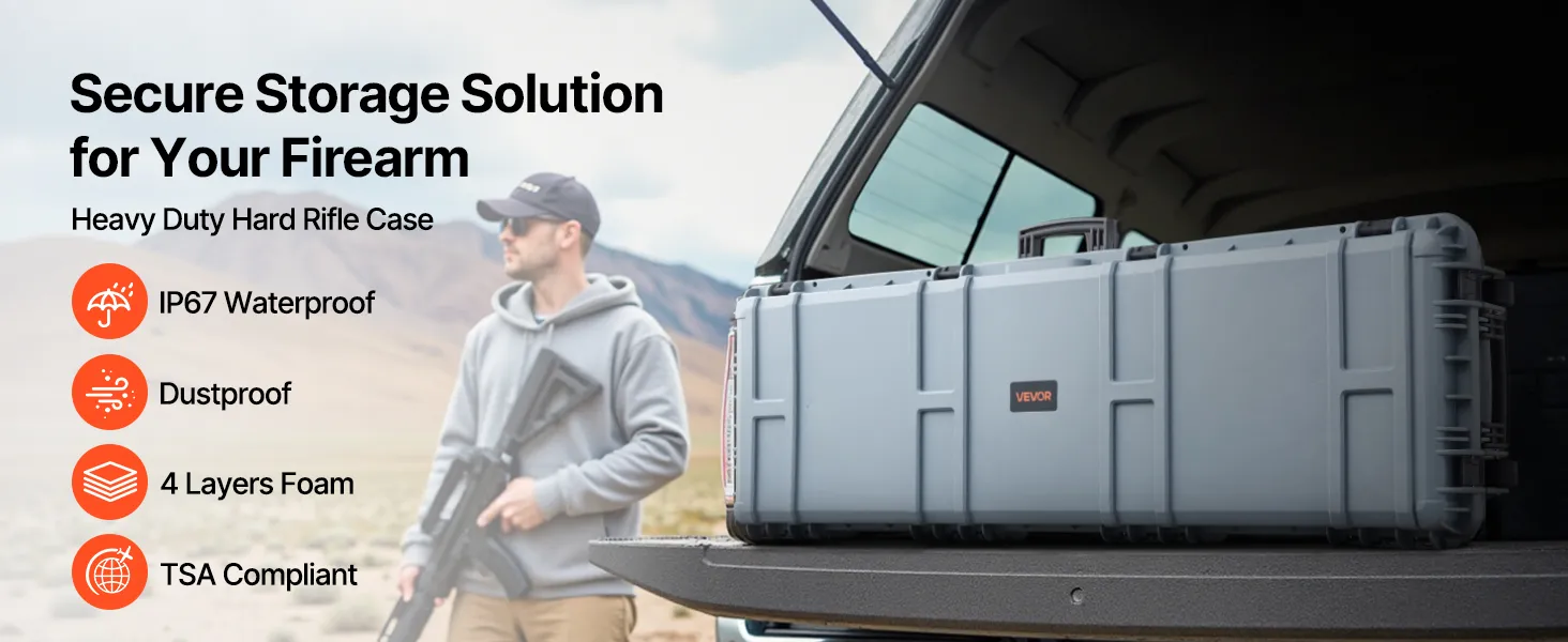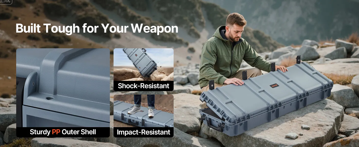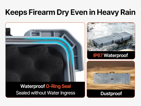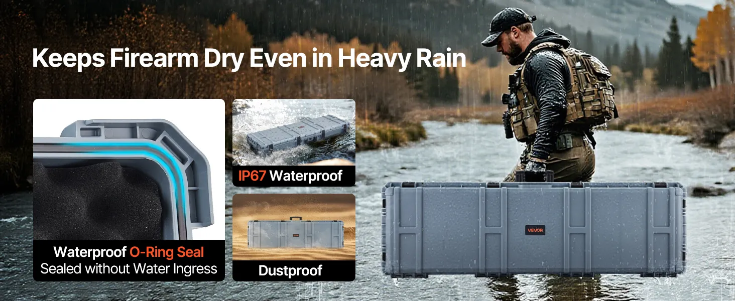 • IP67 Waterproof & Dustproof: This hard rifle case features a rugged, impact-resistant exterior with IP67 waterproof and dustproof protection, ensuring a fully sealed design that keeps water out. It safeguards your firearms against harsh weather conditions