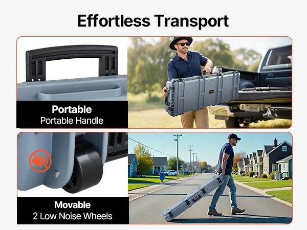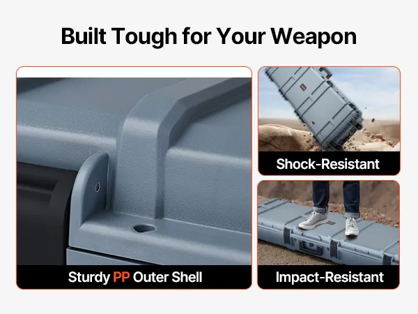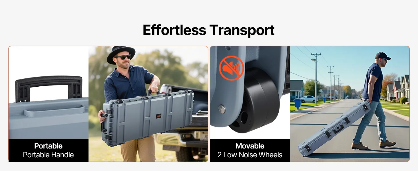 • Portable & Easy to Move: Equipped with two silent wheels, this hard gun case can be effortlessly transported in public spaces, minimizing disruption. Multiple ergonomic handles make lifting and carrying simple, offering maximum flexibility and convenience