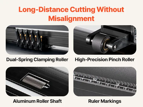 Our vinyl cutting machine uses smooth paper feed rollers to handle both sheets and rolls, ensuring consistent and reliable output.