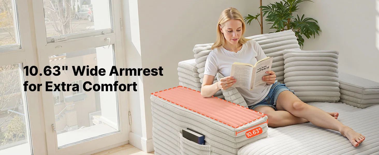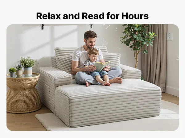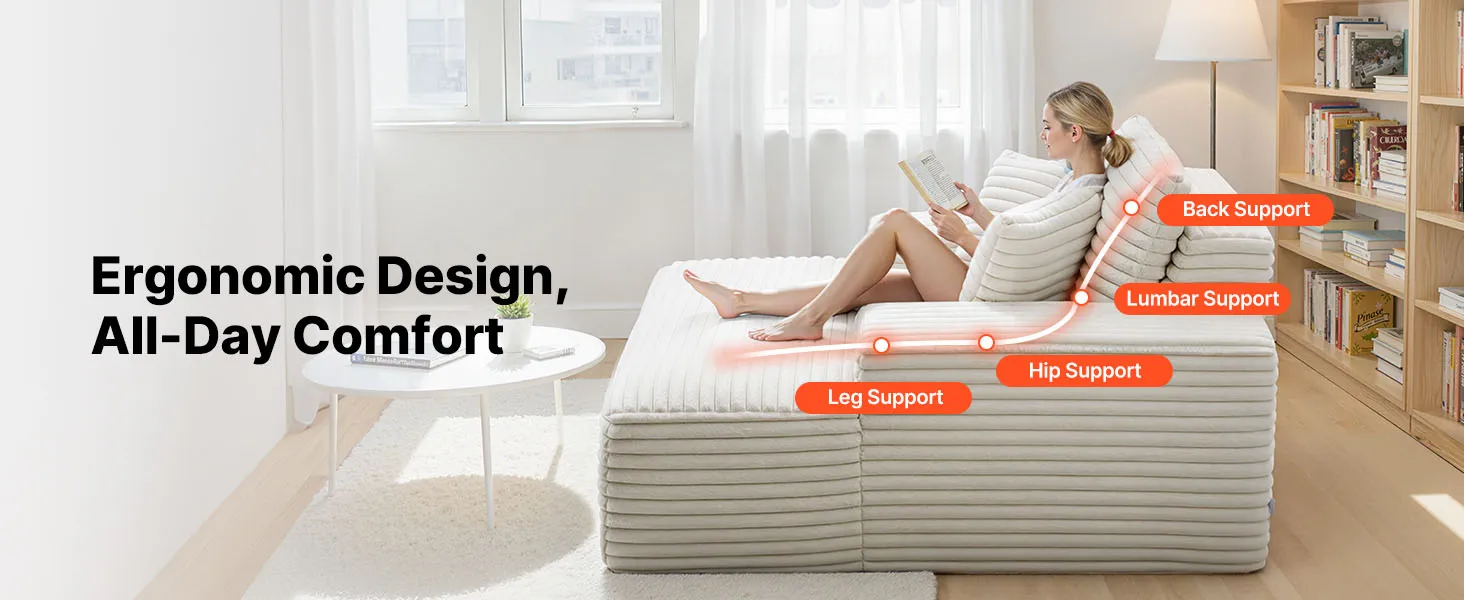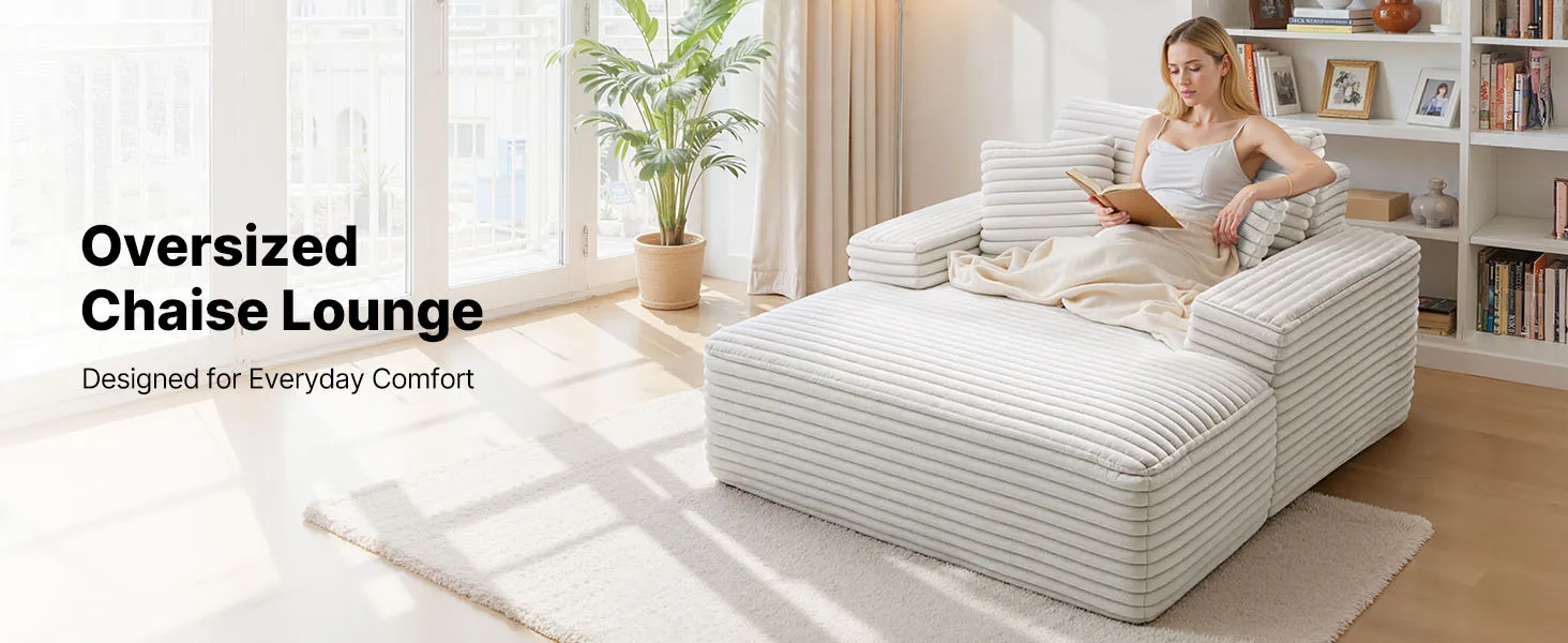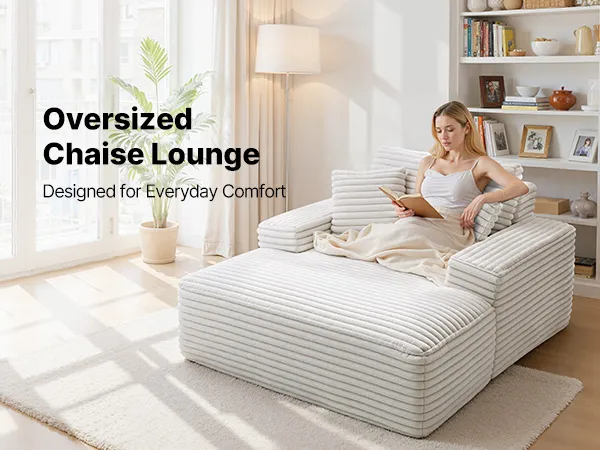 High-density seat cushion of this oversized chaise lounge provides firm support while ergonomic design ensures comfort for long sitting sessions, preventing fatigue and sagging.
