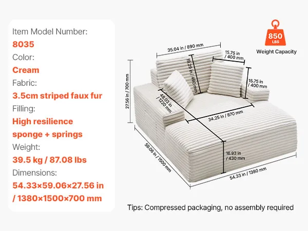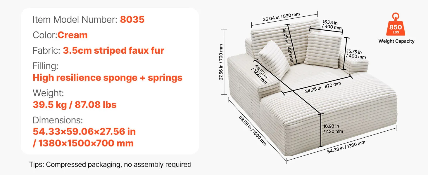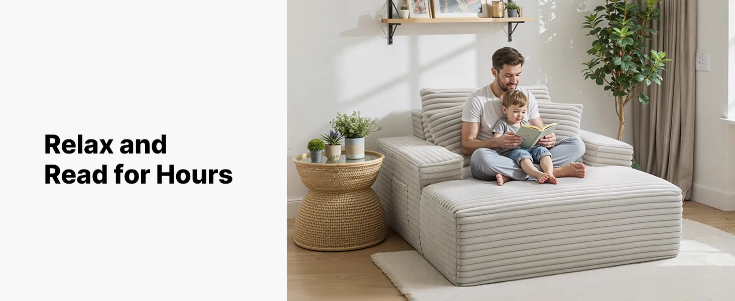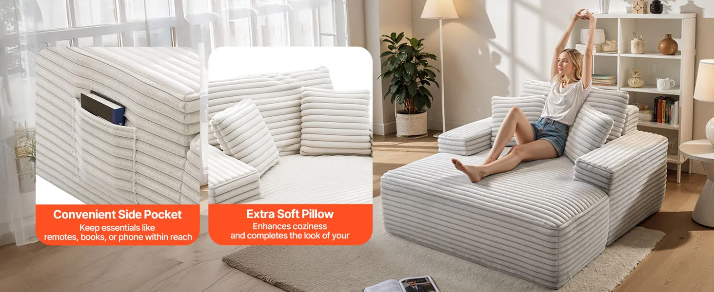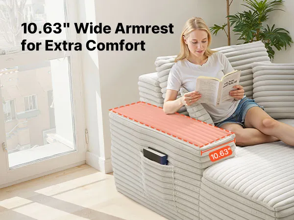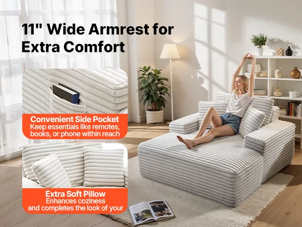 High-density seat cushion of this oversized chaise lounge provides firm support while ergonomic design ensures comfort for long sitting sessions, preventing fatigue and sagging.