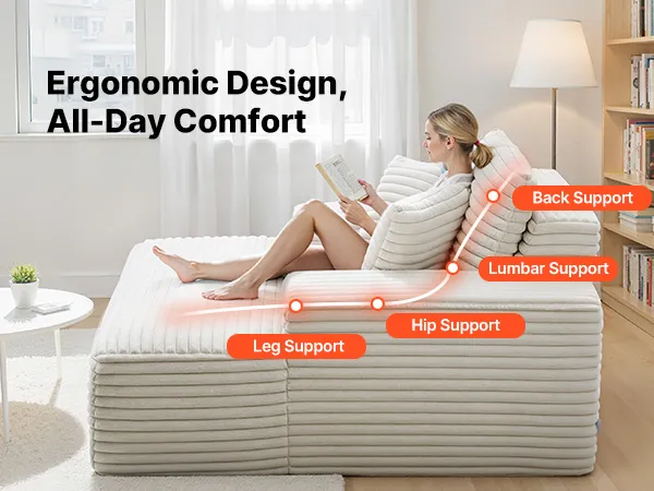 This chaise lounge chair features ergonomic design and high-density cushioning for lasting comfort and support. Its modern, stylish design makes it ideal for reading, napping, or relaxing in bedrooms, living rooms, or study areas.
