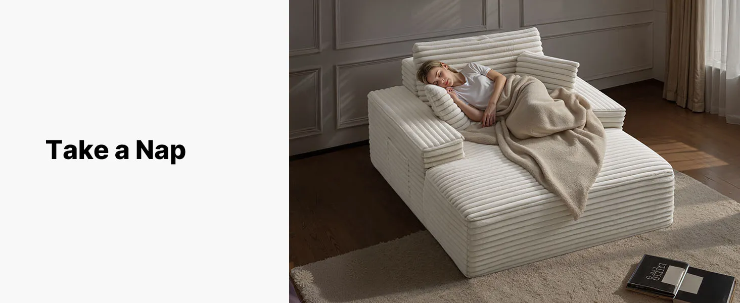 Our chaise lounge creates a warm and inviting corner in your home, perfect for reading, relaxing, or spending leisure time.