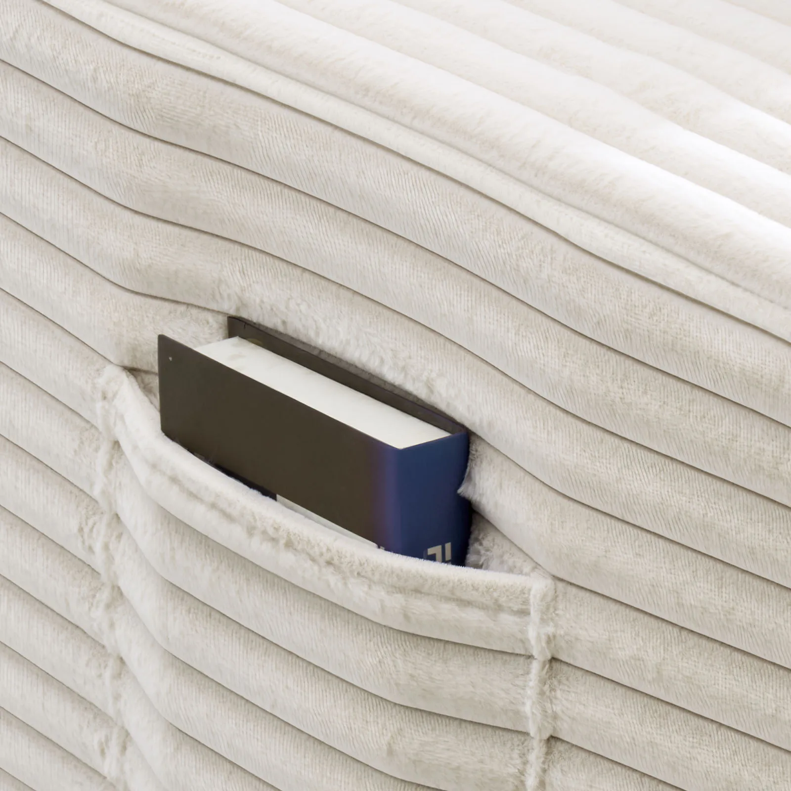 Premium upholstery feels gentle to the touch, while 11 in/279 mm wide armrests and convenient side pockets enhance your lounging experience