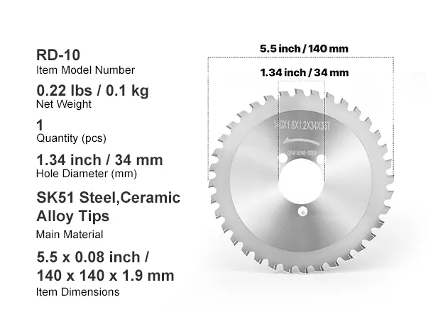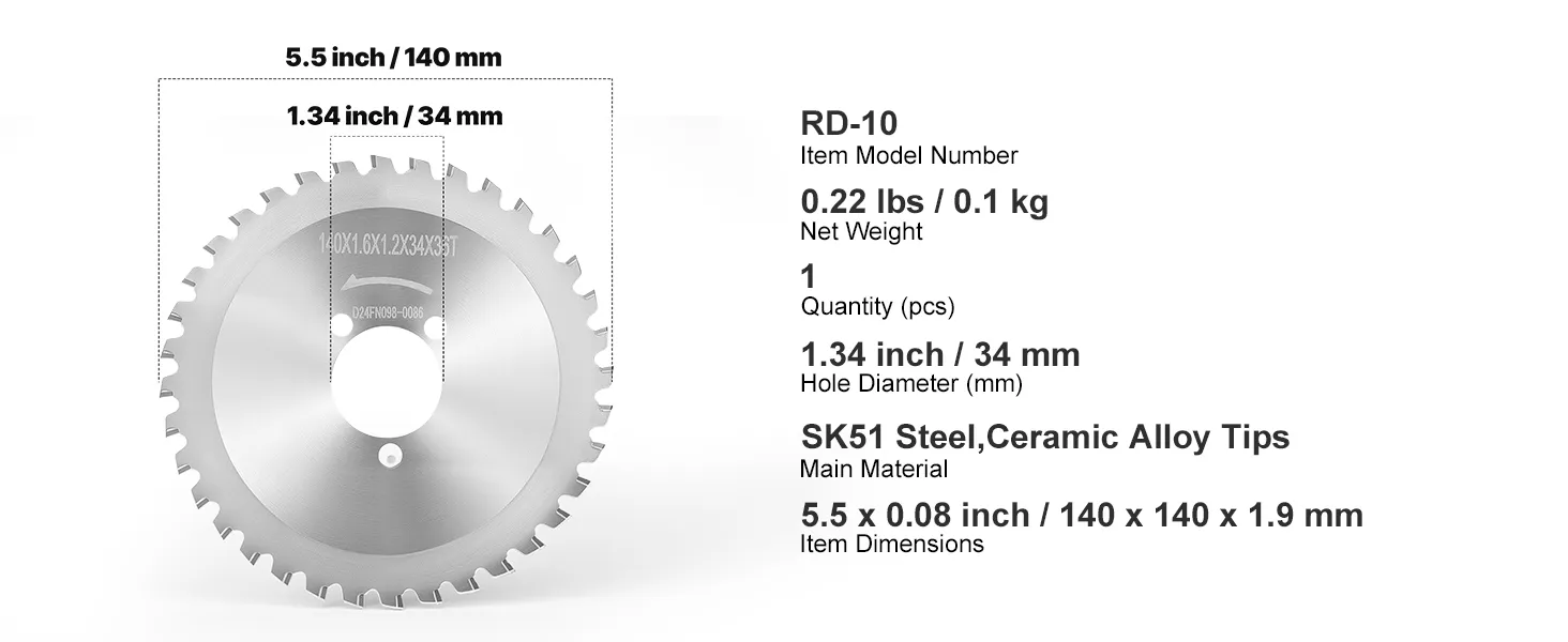 Replacement blade for VEVOR RD-10 electric rebar cutting saw. High-strength SK51 steel with ultra-hard ceramic alloy tips ensures sharper, longer-lasting cuts. 36-tooth design reduces vibration and jamming for faster, smoother cutting. Ideal for varied jobsite use.