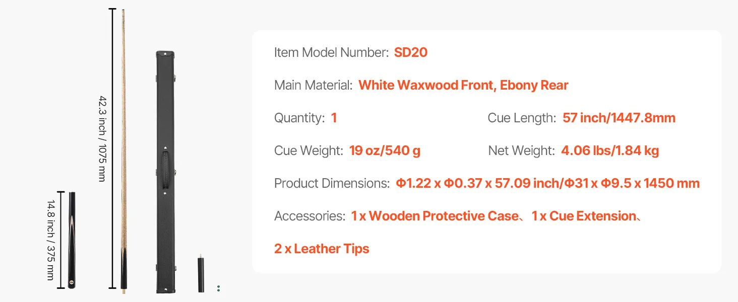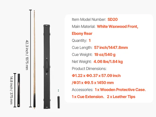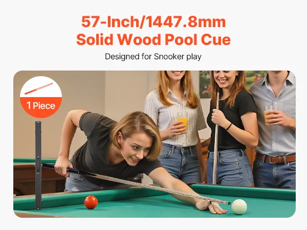 • Ideal for Beginners: Designed for convenience, this 57 inch/1447.8mm, 19 oz/538g pool stick has a 3-piece construction that allows for easy storage and portability. Ideal for beginners, it ensures a comfortable and controlled playing experience