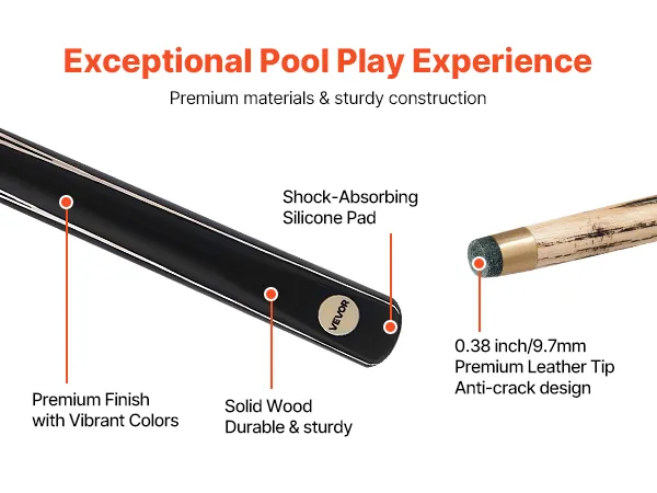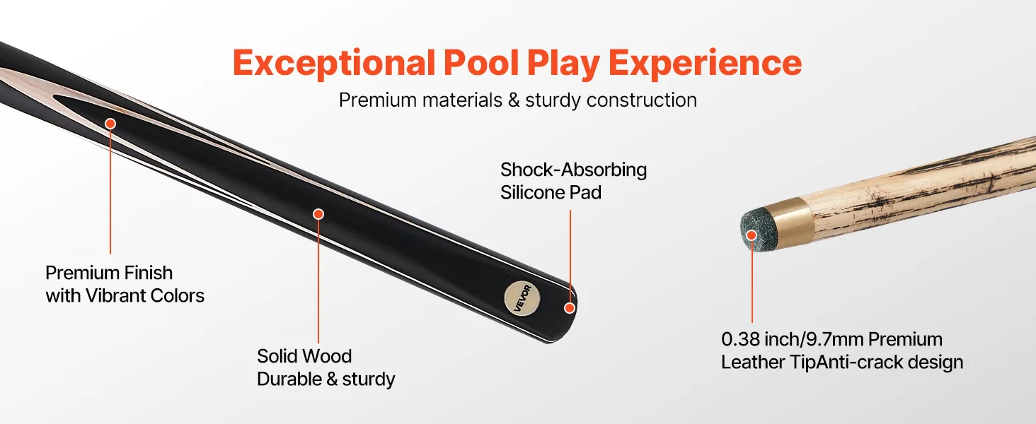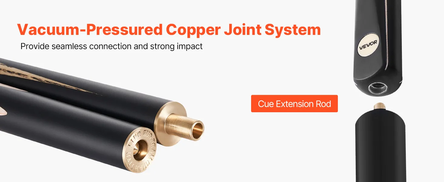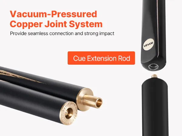 • Seamless Air Pressure Joint: Designed with an air pressure copper joint, this VEVOR pool cue ensures a secure, smooth connection. The matte coating offers a comfortable, slip-resistant grip. It also includes an extension for added reach, enhancing playability