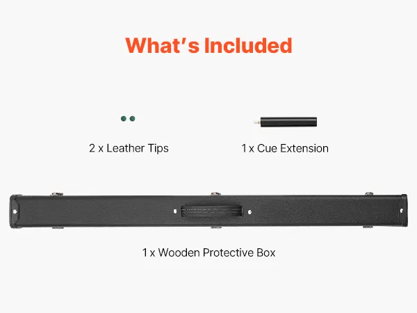 • Essential Cue Kit: This set includes: 1 x wooden box, 1 x extension, 2 x leather tips. Ideal for beginners, this set allows you to start practicing right away, making it the ideal choice for those new player to the game