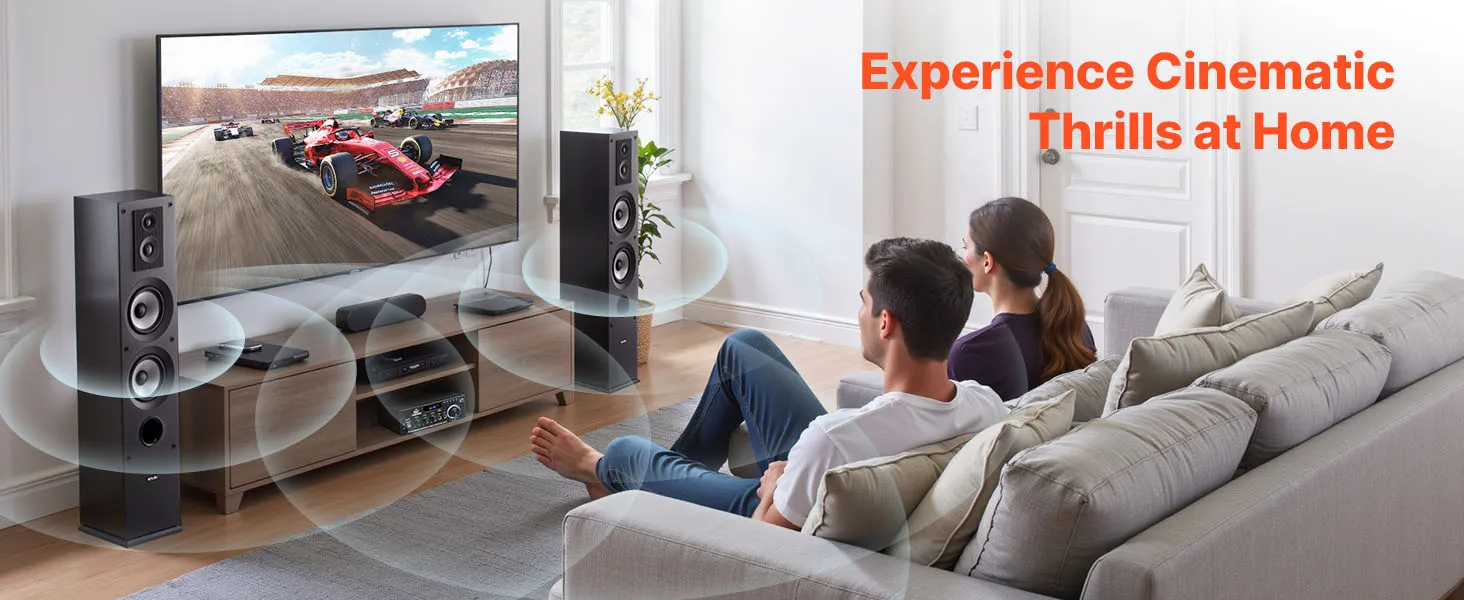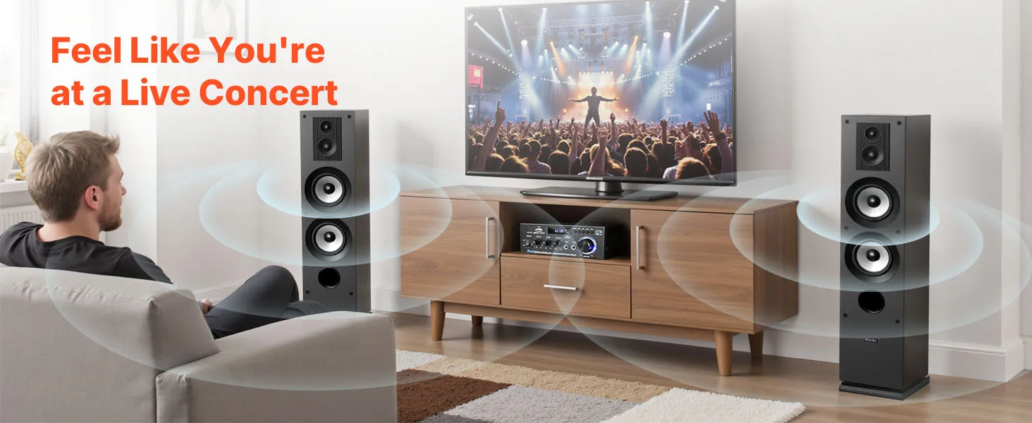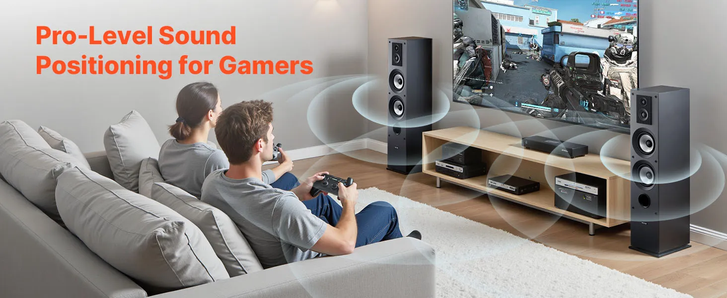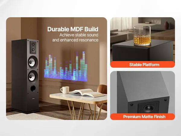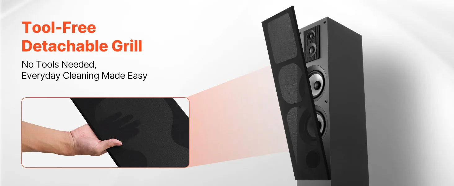 Our floor-standing tower speaker adopts dual woofers, delivering tight, punchy bass that hits with precision.