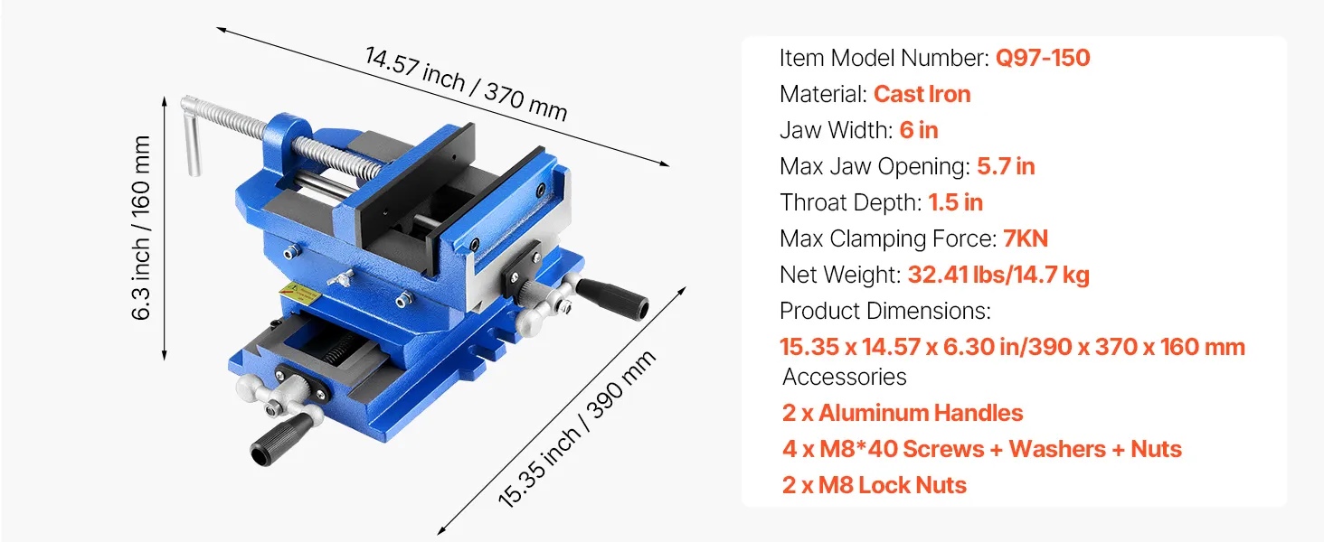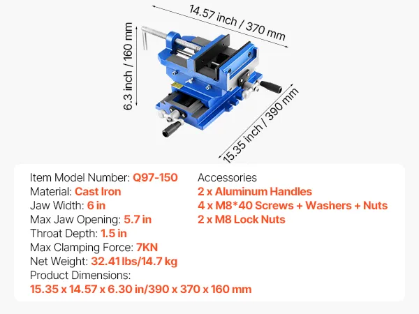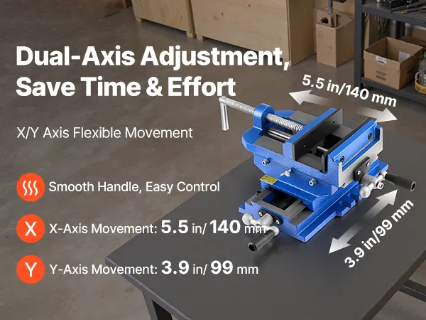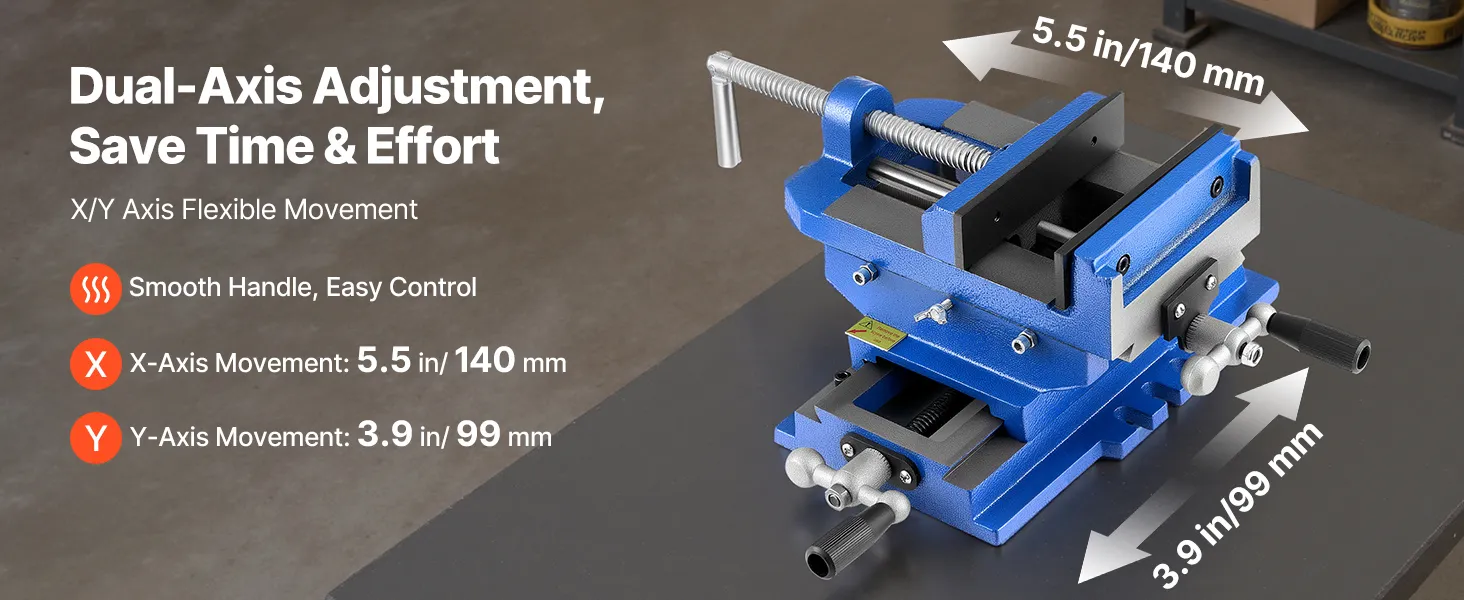 Built from high-strength cast iron, this cross slide drill press vise supports precise X/Y dual-axis adjustments. Its dual handles allow smooth horizontal and vertical movement. Ideal for milling machines, drill presses, and more.