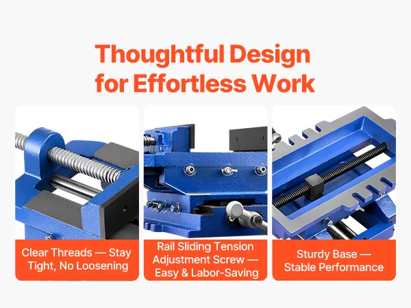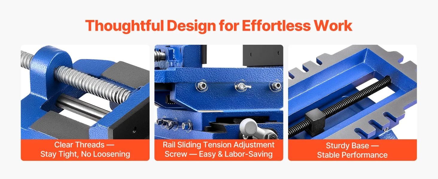 Our X Y axis drill press vise features clear threads that stay tight and resist loosening, ensuring steady clamping. The sturdy base provides stability during operation, enabling a secure and reliable working experience.