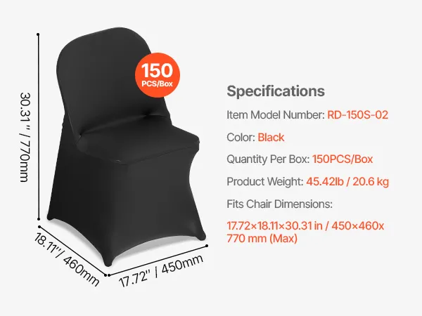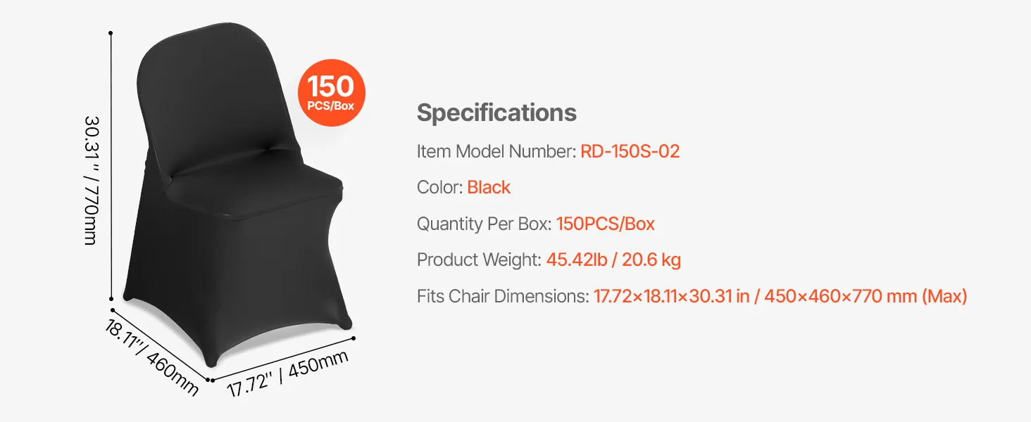 VEVOR 150 шт. черные эластичные чехлы на стулья до 45x46x77 см, полиэстер и спандекс для свадеб и мероприятий