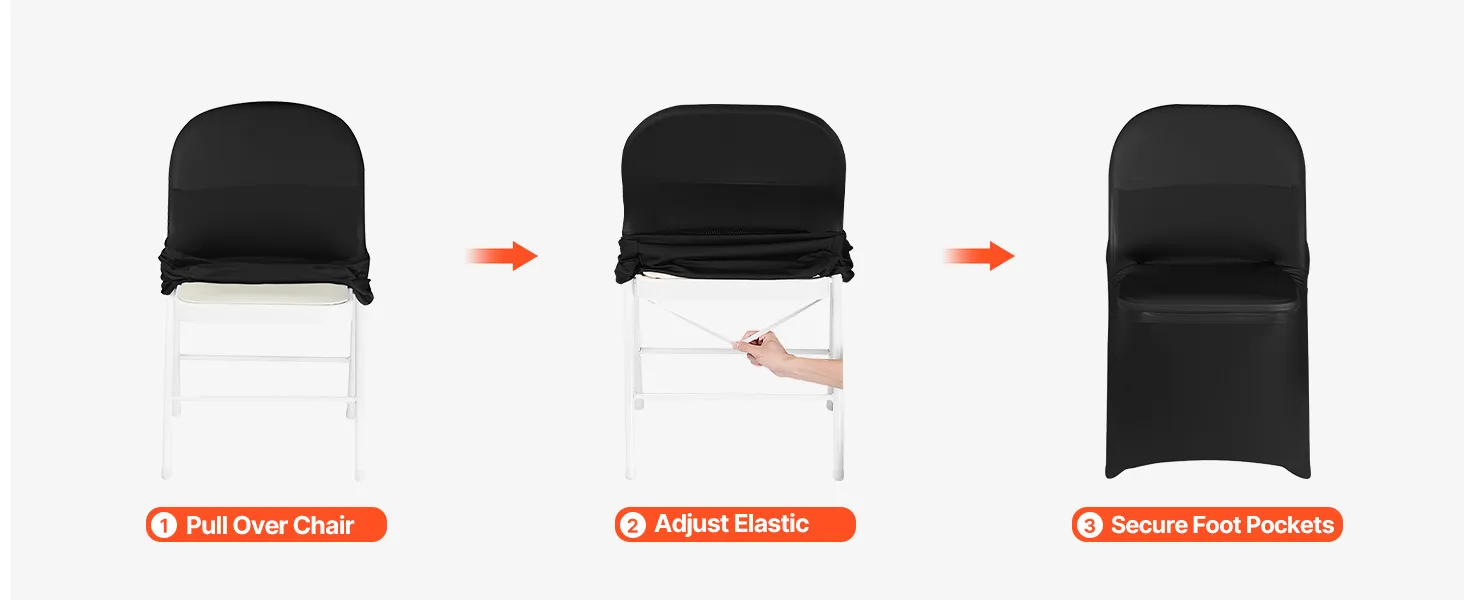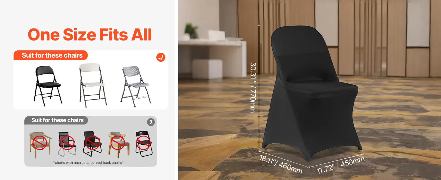 • Fittable Chairs & Occassions: These chair covers are ideal for folding chairs. You can use them to decorate personal and business events, including birthday party, wedding, business meeting, banquet, celebrations, etc