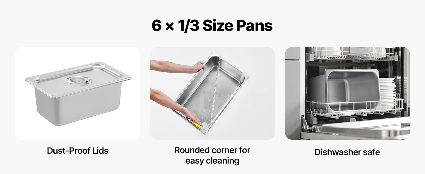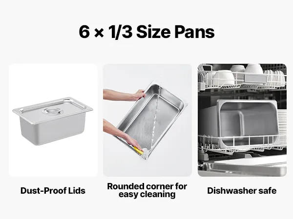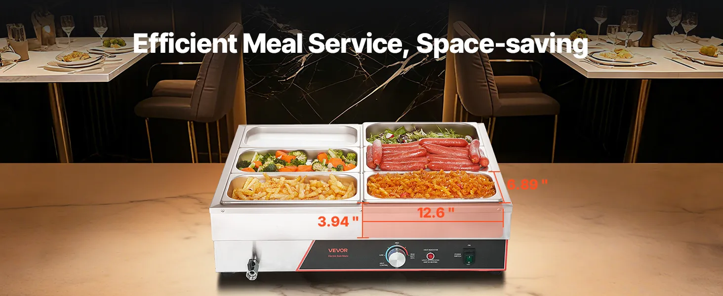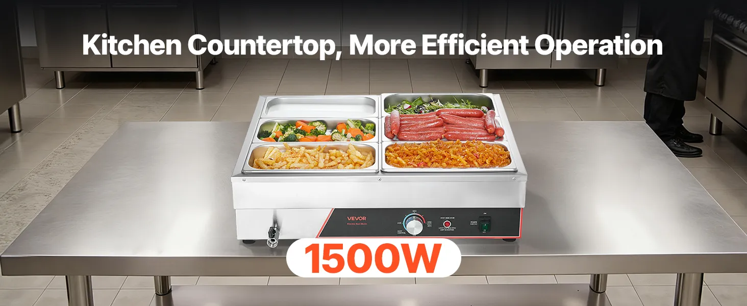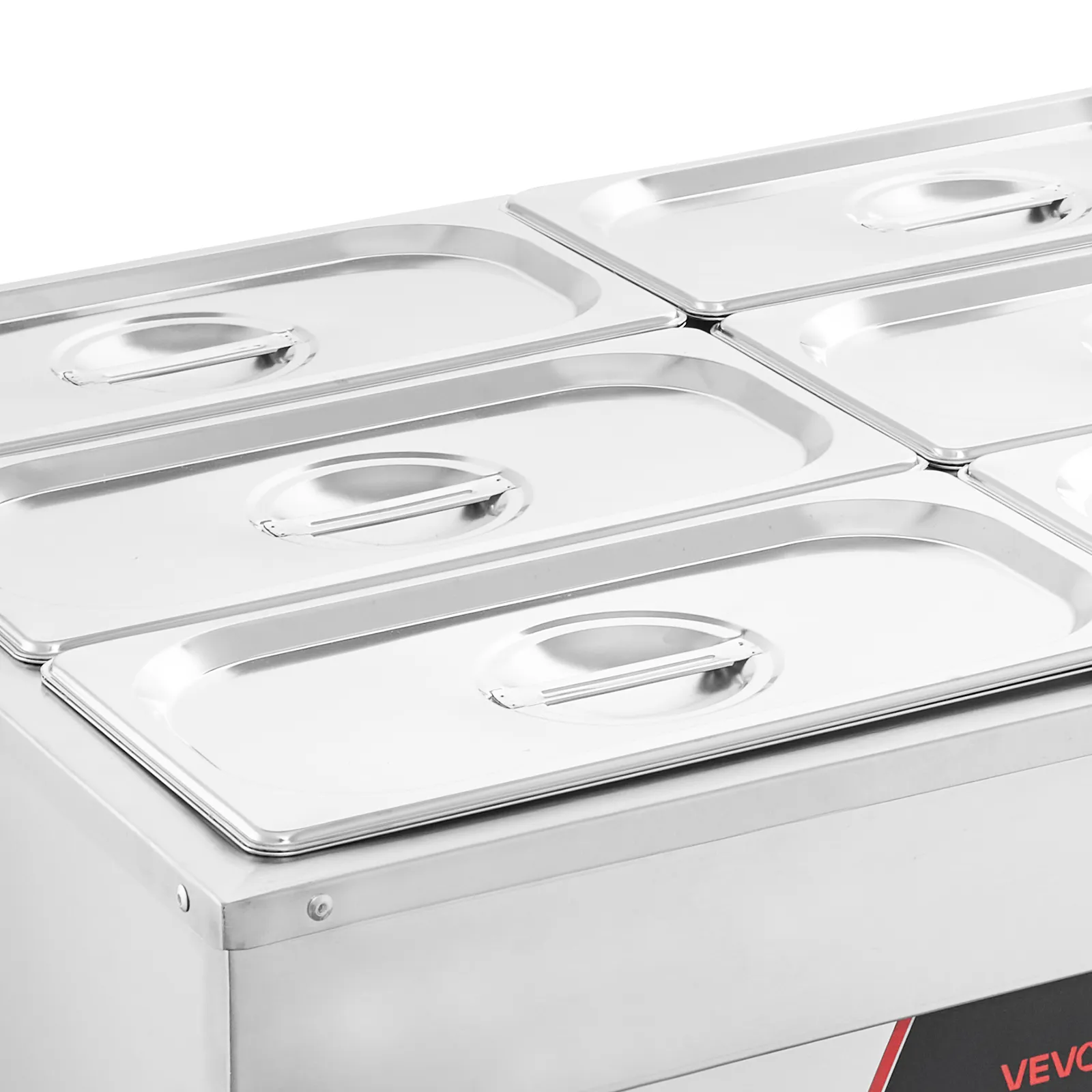 VEVOR Commercial Food Warmer, 1500W Electric Stainless Steel Steam Food Warming with Lid, 6-Pan Fast Heating Countertop Buffet Bain Marie with Power Cord, for Catering, Restaurant, Party & Buffets