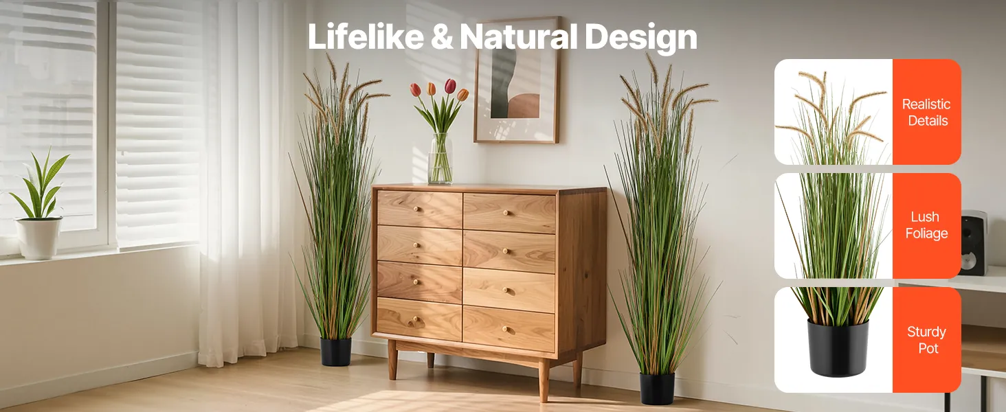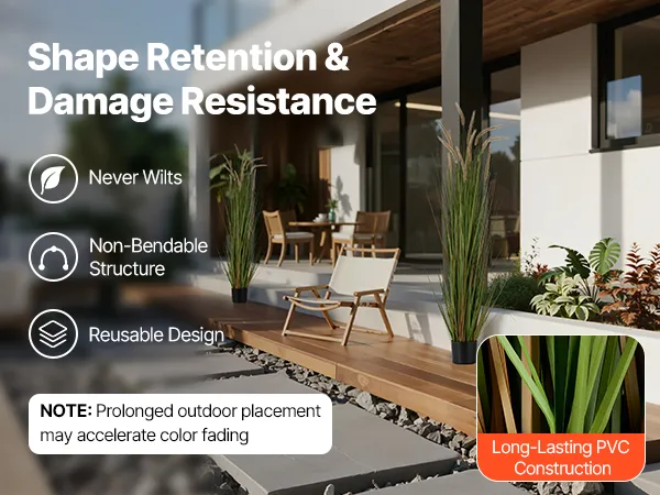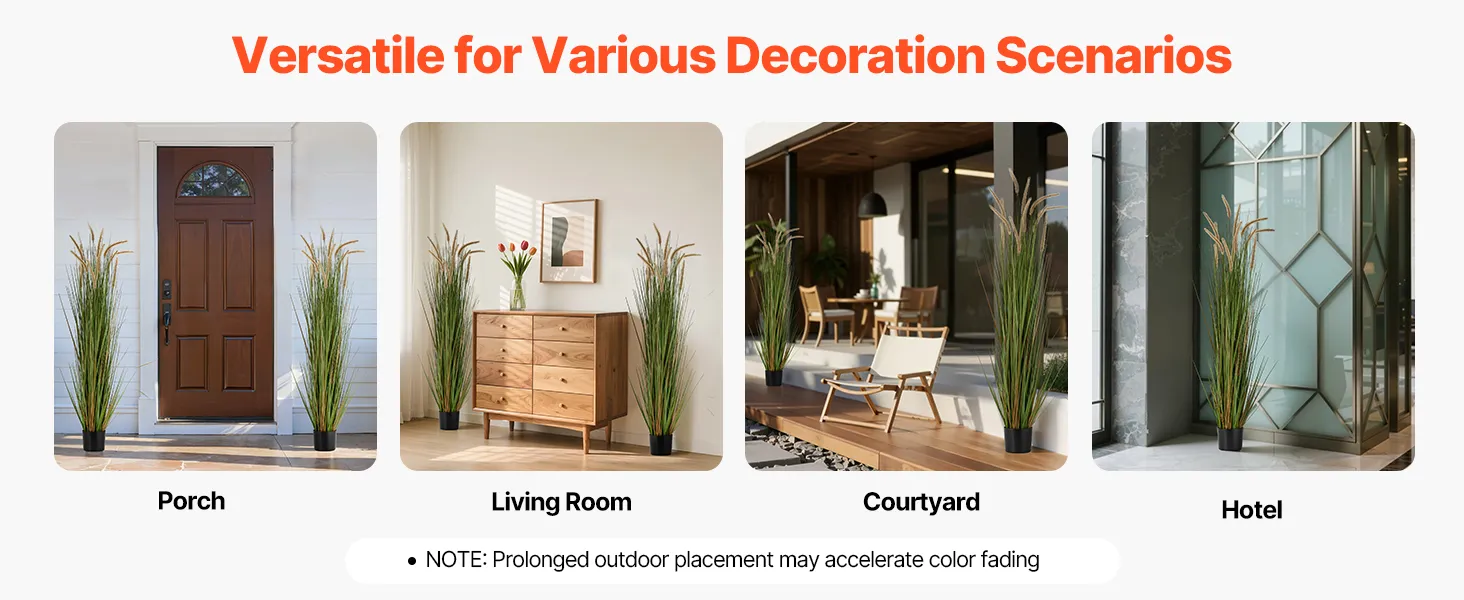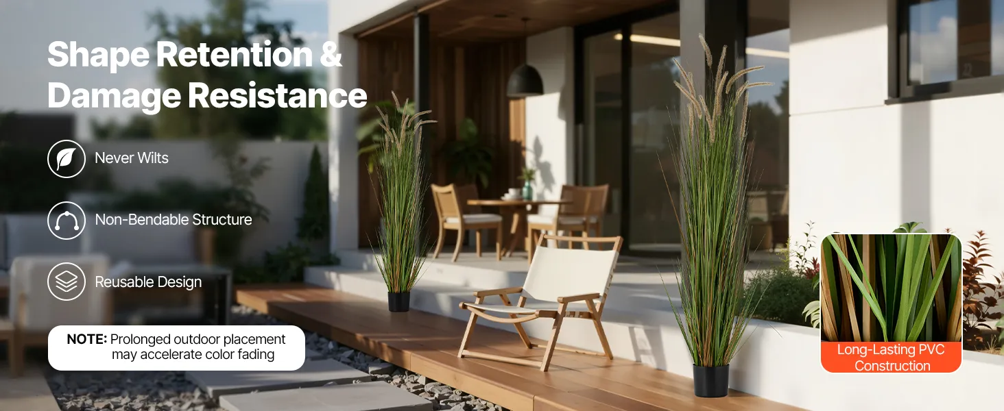 • Sturdy Like New: Crafted from premium PVC leaves, this artificial potted grass plant won’t wilt, fade, or easily bend. It keeps a stable look for both indoor and outdoor decor. Note: prolonged outdoor exposure may cause faster fading