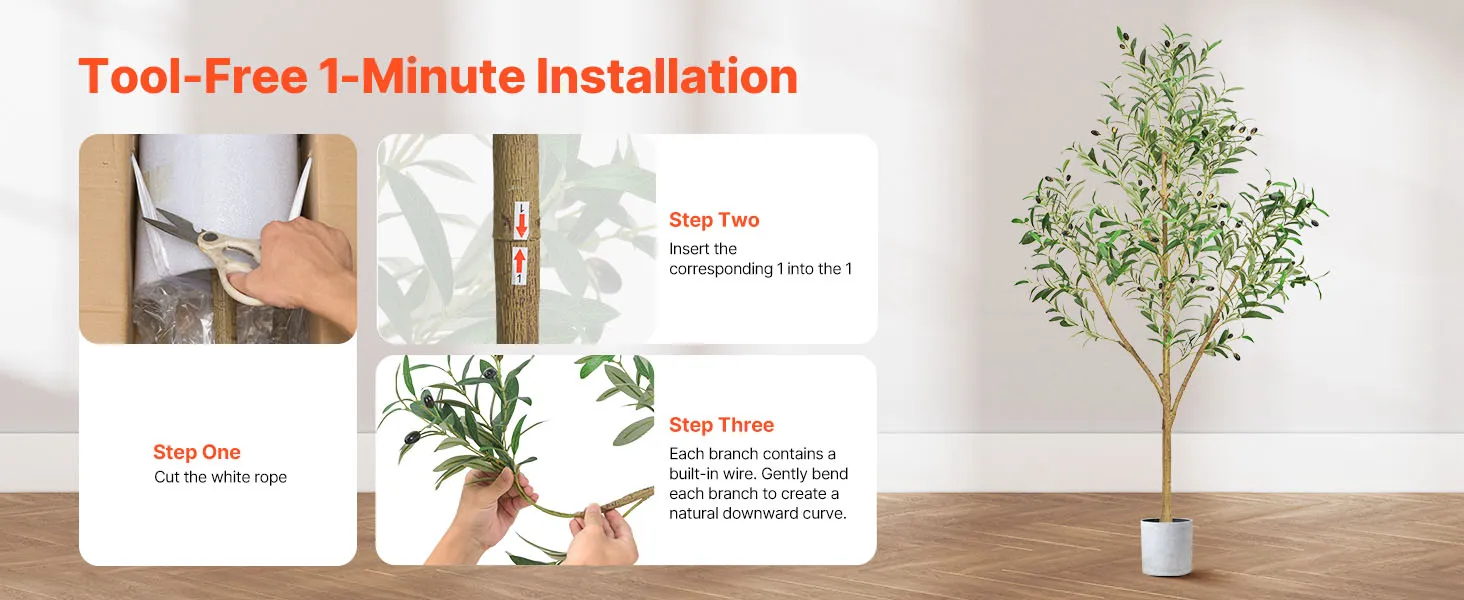 • Easy Maintenance Greenery: No watering, no pruning, no fading or wilting! This fake tree stays fresh and vibrant year-round. Just wipe with a damp cloth to keep it clean—enjoy the beauty of nature without the hassle of plant care