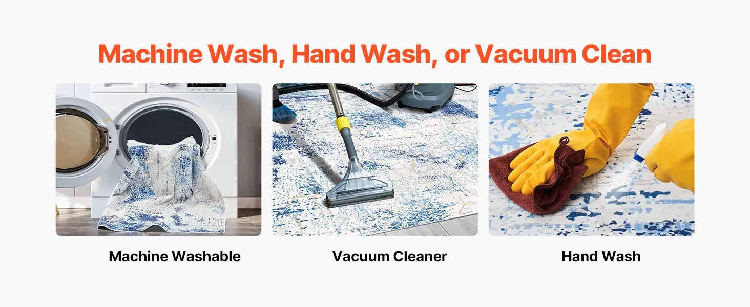 О: Наш ковер можно стирать вручную, пылесосом или в машине. Мы рекомендуем стирать его в барабанной стиральной машине с холодной водой и сушить естественным путем, без глажки или подогрева.