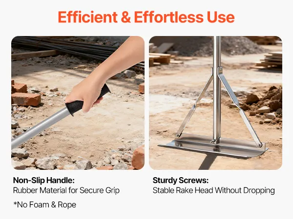 Featuring a rubber handle, our garden rake provides a non-slip, secure grip. Its secure screws keep the head firmly in place, making your operation more reliable.