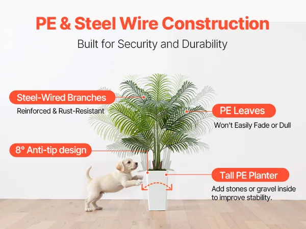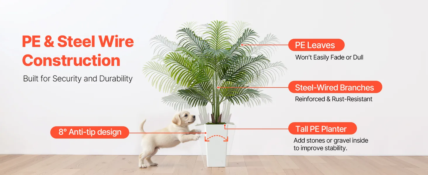 Crafted with PE leaves and internal steel wire, these plants fading-resistant and bending-resistant. The sturdy planter helps avoid tipping, offering both reliability and long-term use.