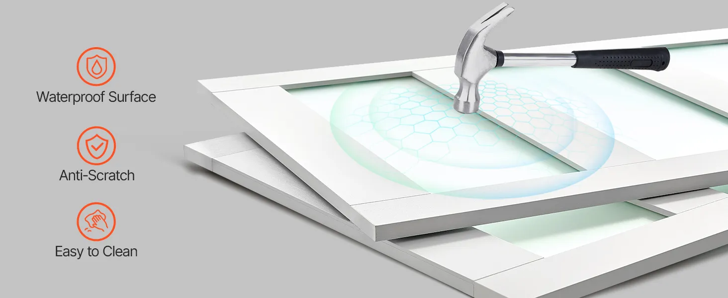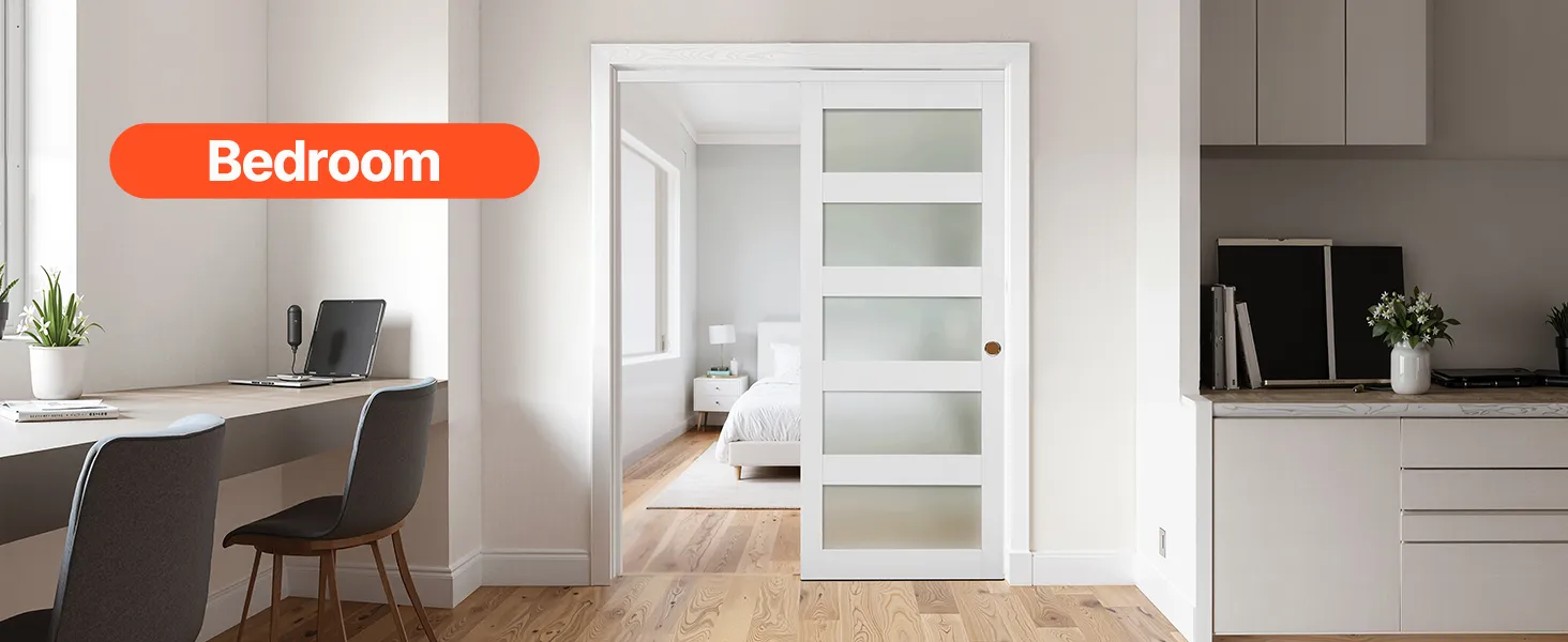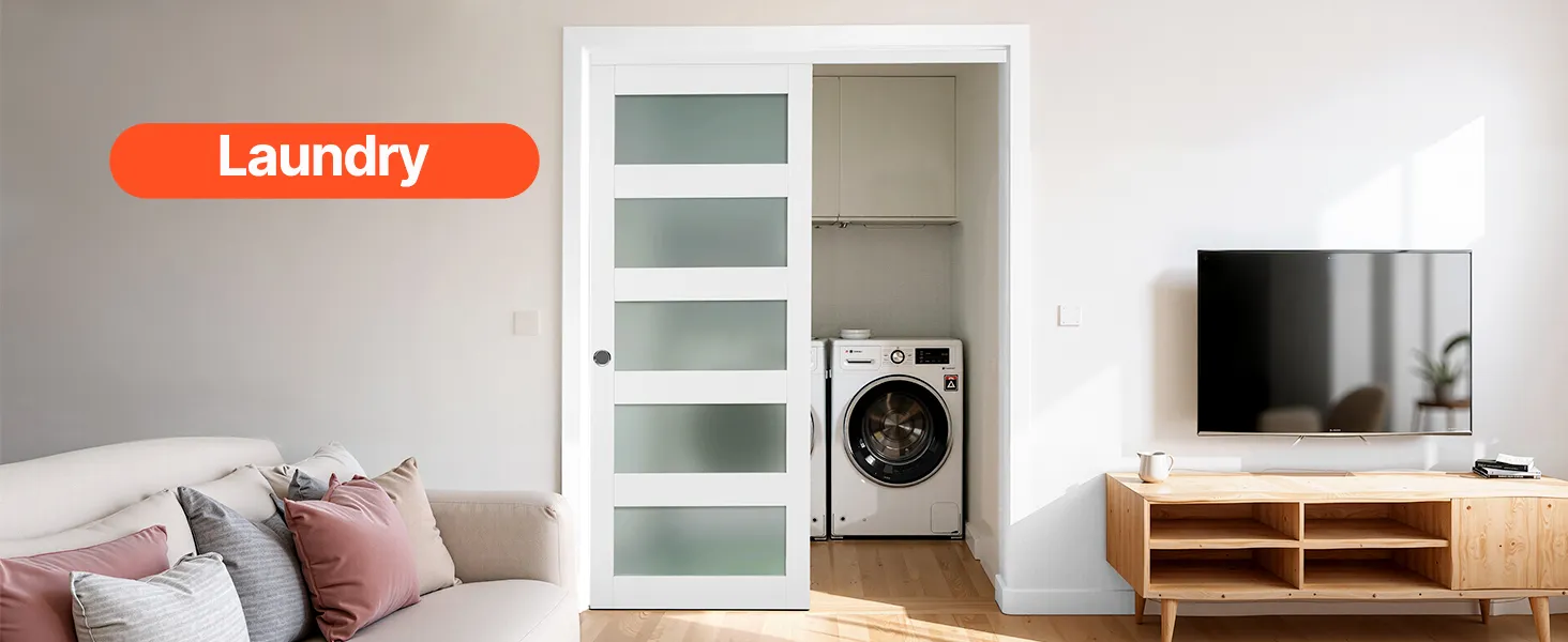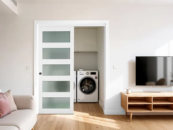 Featuring a durable wood frame, waterproof surface, and 5-Lite frosted tempered glass, our sliding closet doors provide smooth sliding while saving space. Each door panel size: 787 mm (W) x 1986mm (H), thickness: 22 mm. Fits door openings of 1524 x 2032 mm.