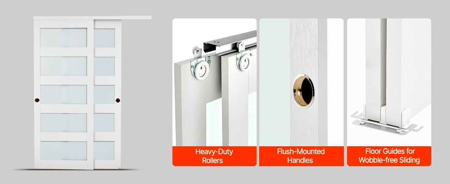 The door guides ensure the panels slide straight, preventing wobbling and swaying.